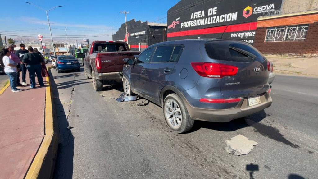 Chihuahua, Chih.- Una carambola de tres vehículos en la avenida Pacheco y 20 de noviembre dejó como saldo fuertes pérdidas materiales, así como congestión vial.