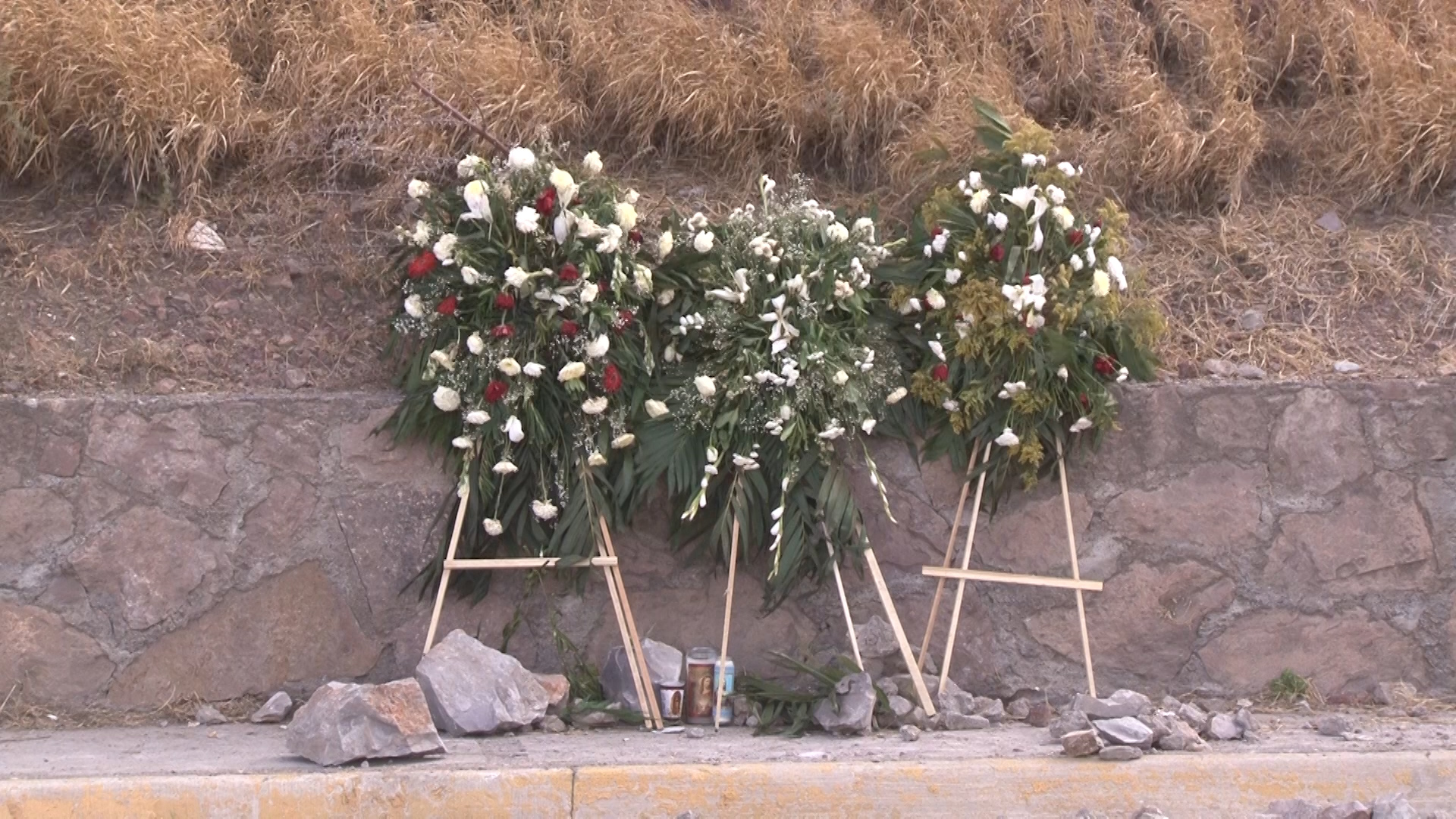 Chihuahua, Chih.- Tres coronas fúnebres fueron colocadas sobre la avenida 20 de Noviembre, a la altura de la calle 51 y Media, en la colonia Cazadores, en memoria de las víctimas del trágico accidente ocurrido el pasado 21 de diciembre en el Cerro Coronel.