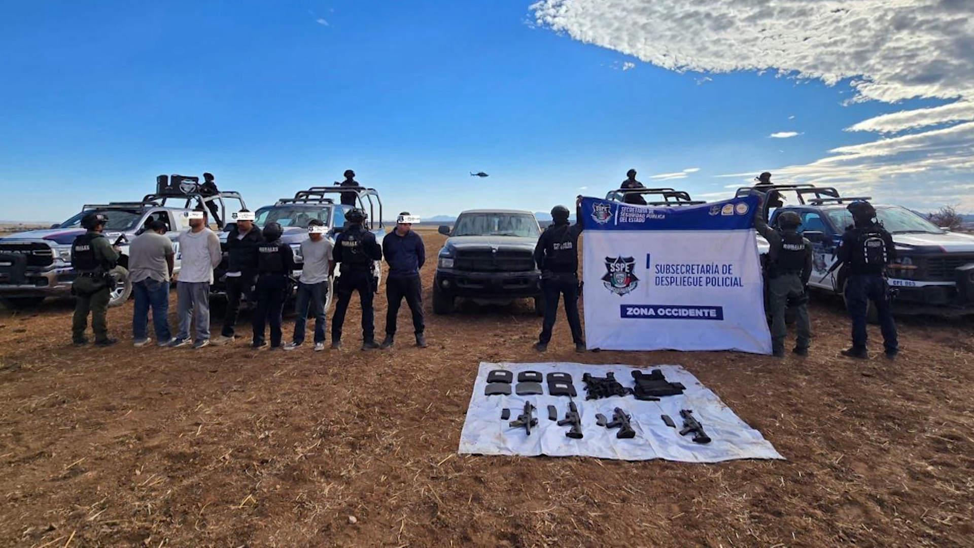 La aprehensión se logró cuando los oficiales detectaron, en una brecha, una camioneta Dodge Ram cuyos ocupantes portaban armas de manera visible, por lo que procedieron a darles alcance.