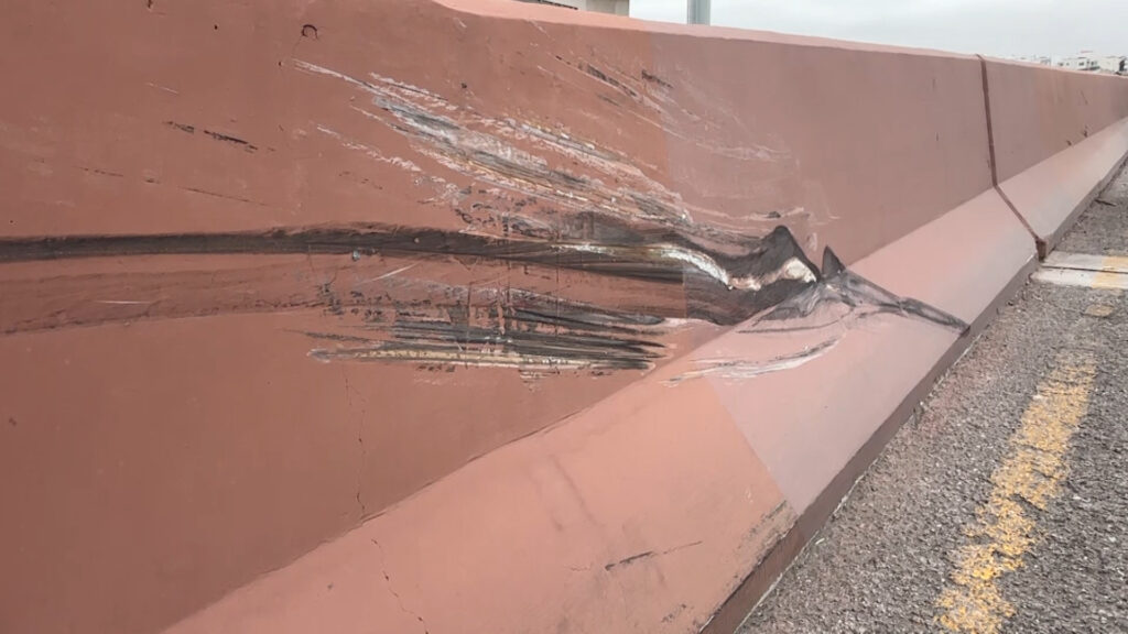 Tras el impacto, el vehículo dio varias vueltas a lo largo del puente hasta terminar en el sentido contrario de la circulación, además de que una de sus llantas se reventó debido a la fuerza del golpe.