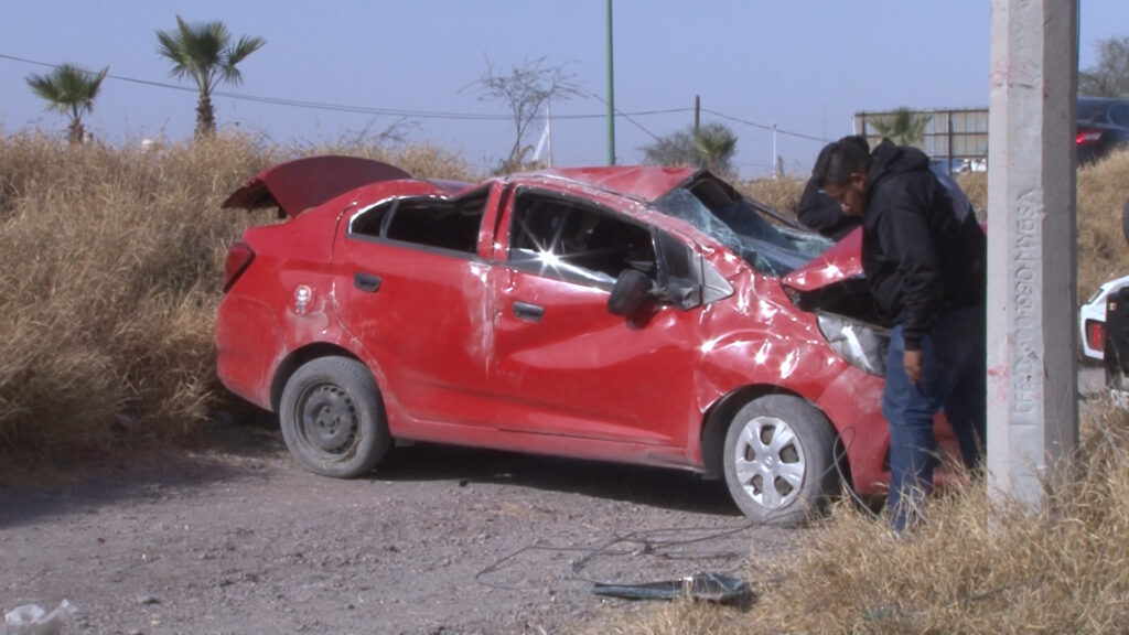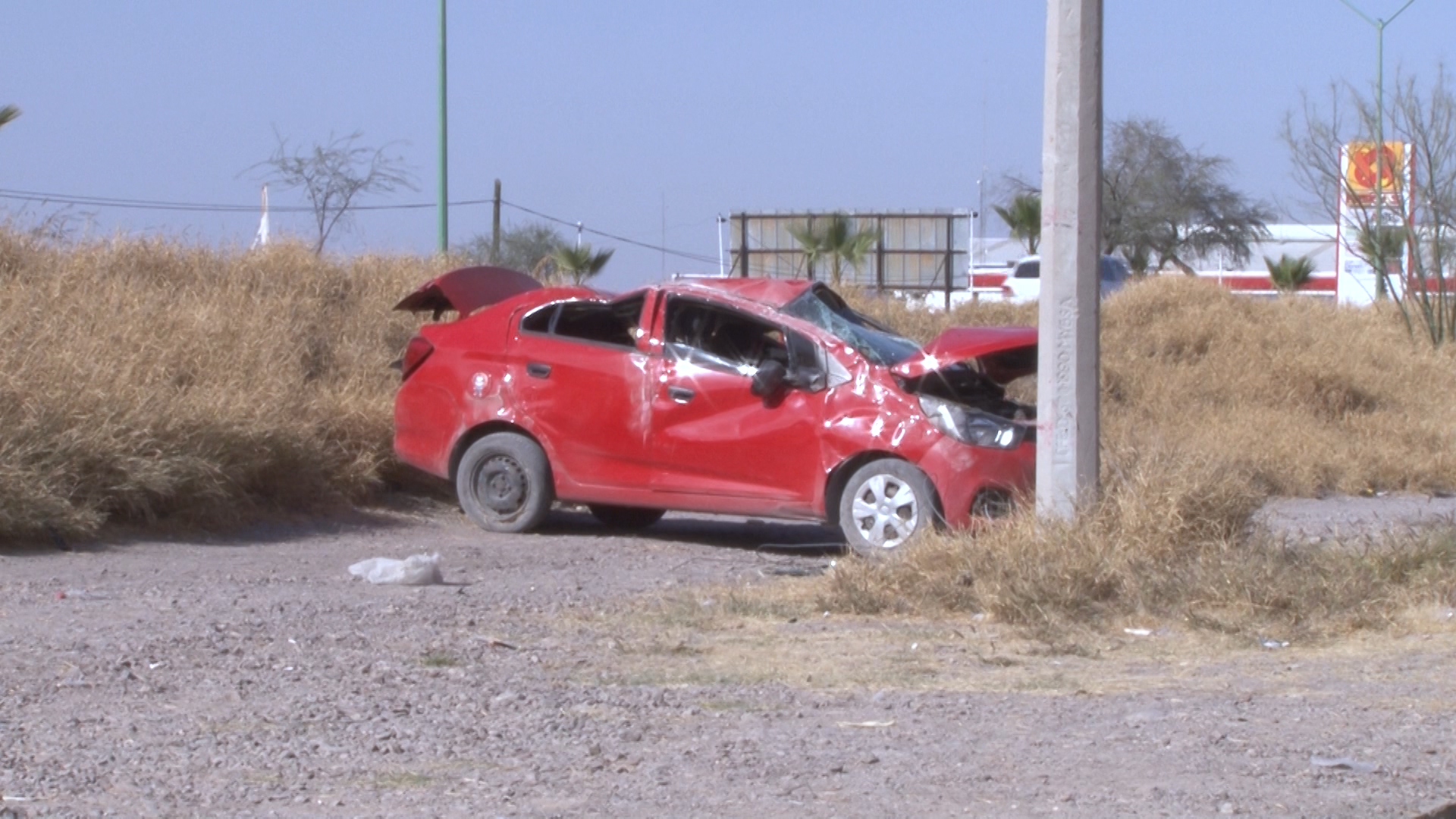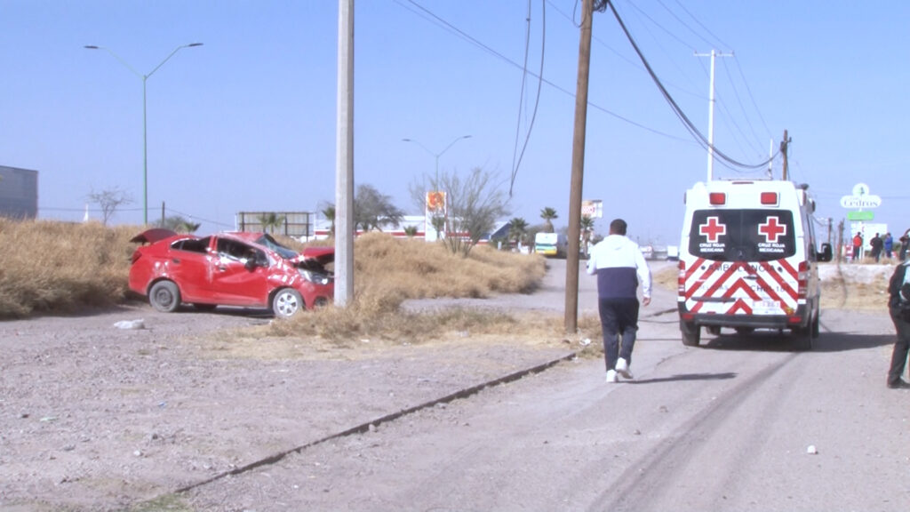 Delicias, Chih.- Una volcadura se registró en el kilómetro 138 de la carretera 45, en el sentido de Delicias a Meoqui, a la altura de la central de abastos de Delicias, la tarde del miércoles.