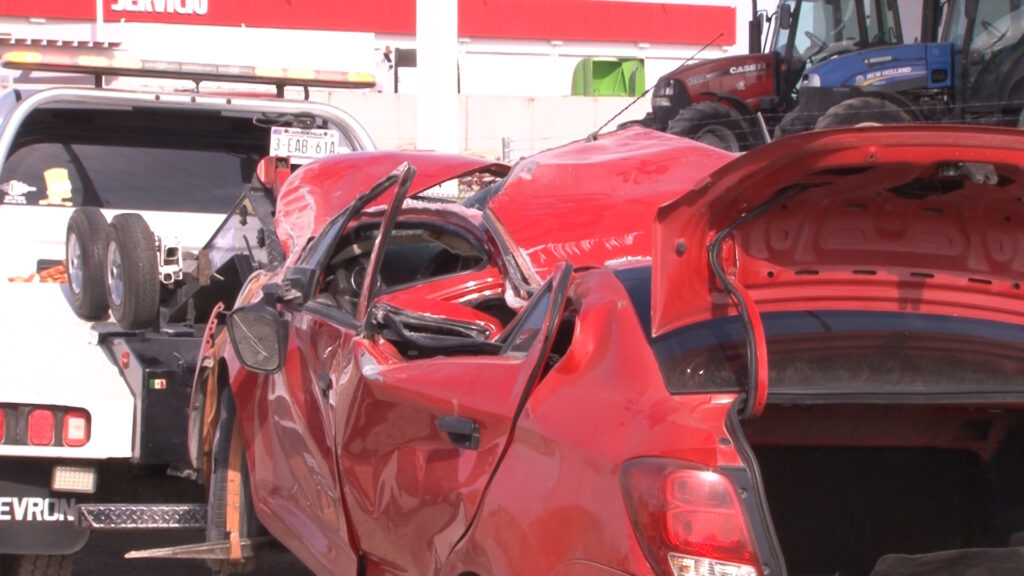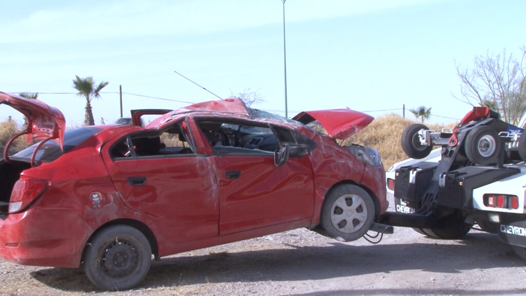 Según se informó, una pickup que circulaba de norte a sur por la carretera se atravesó a un Chevrolet Spark rojo al momento de tomar el retorno y, al tratar de esquivarlo, el conductor perdió el control, volcó y chocó contra un poste.