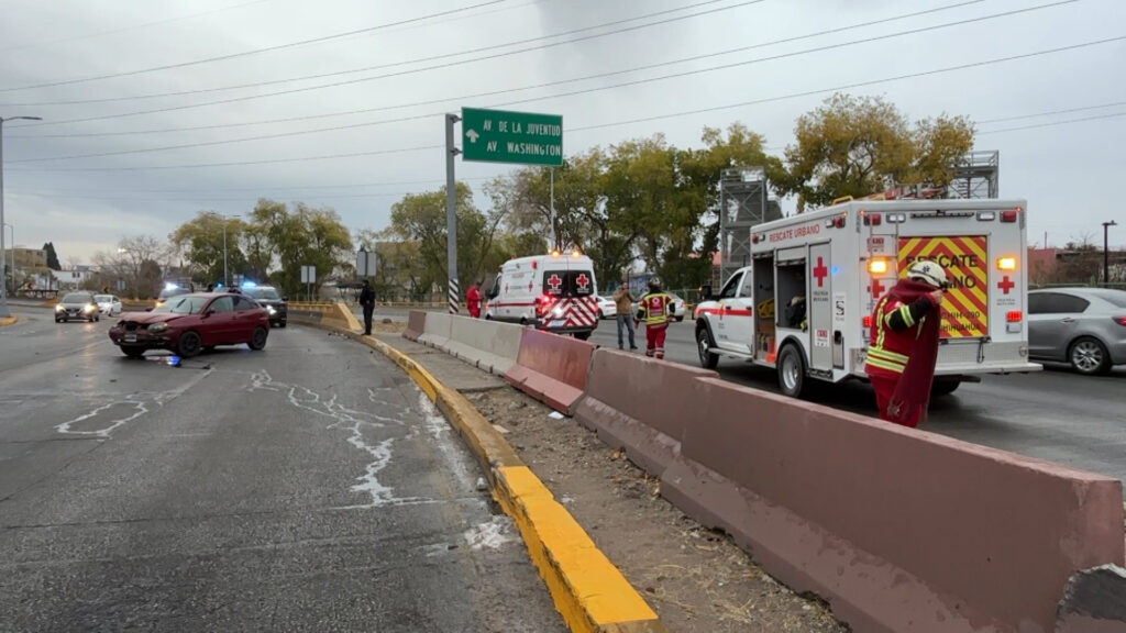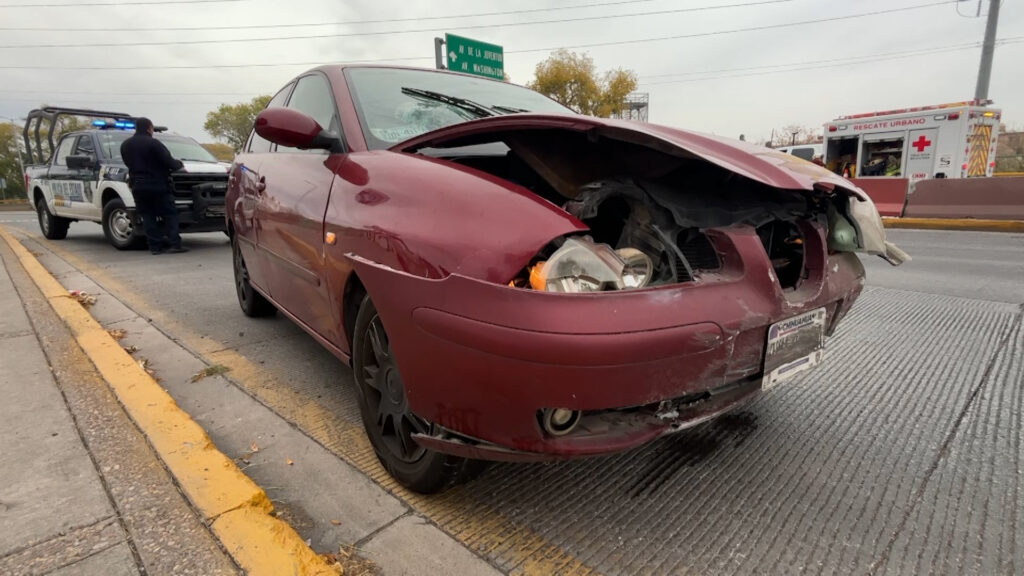 Chihuahua, Chih.- Una mujer de aproximadamente 35 años resultó lesionada tras impactar su vehículo Seat Ibiza, de color vino, contra el muro de contención de la avenida de la Cantera, a la altura de la calle Río de Janeiro.