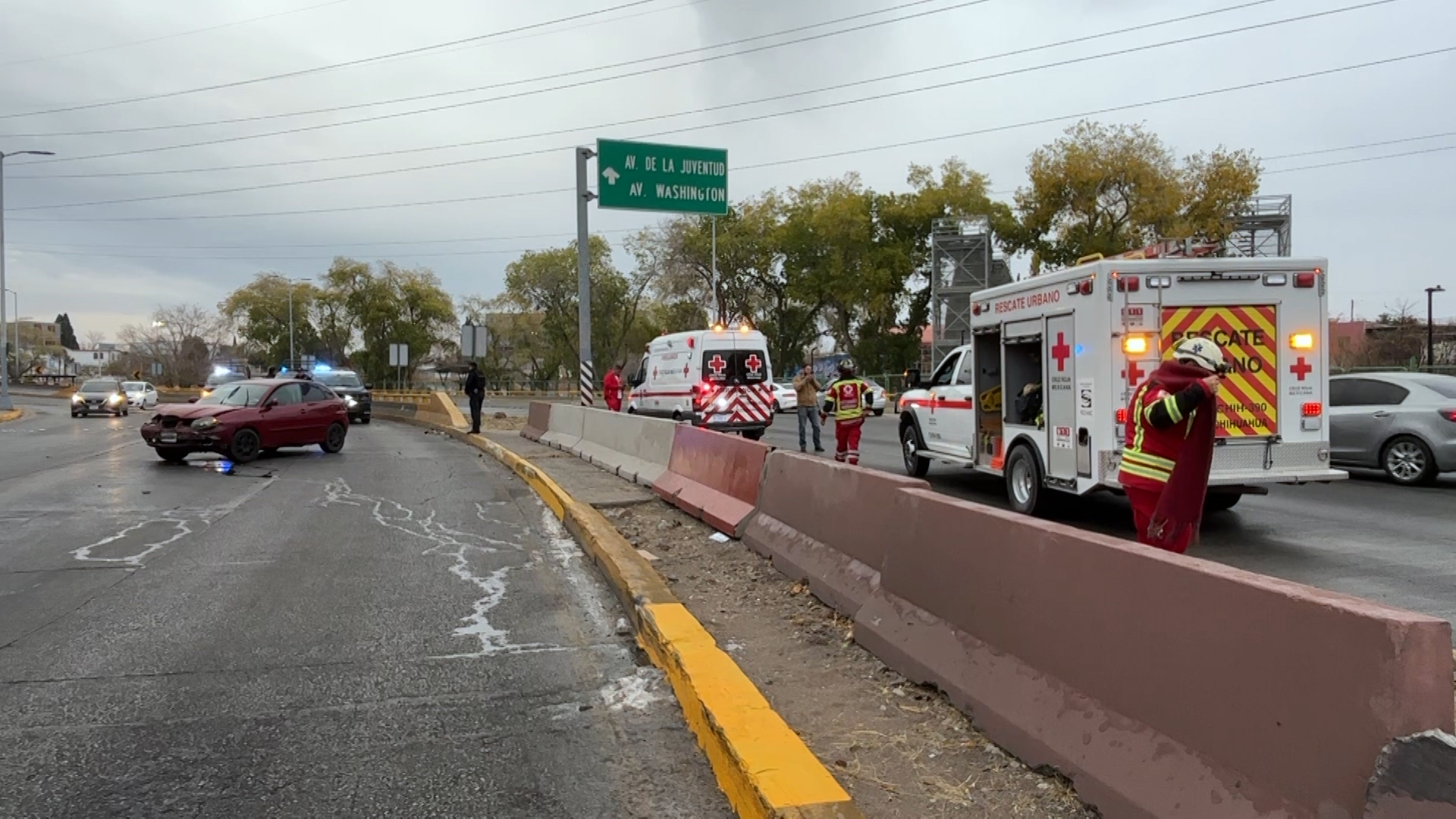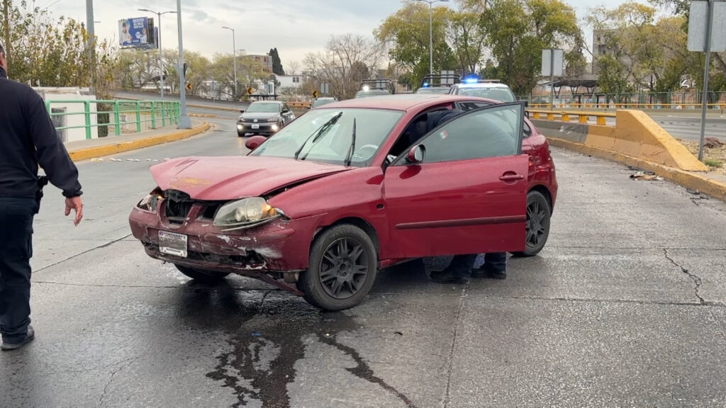 Al perder el control del vehículo por el pavimento resbaladizo, la conductora chocó contra el muro y el automóvil se proyectó varios metros más adelante.