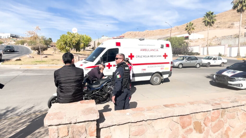 Chihuahua, Chih.- Un agente motociclista de la Policía Vial resultó con lesiones leves tras ser impactado por una camioneta Acura color blanco en la colonia Misiones III, la tarde de este martes.