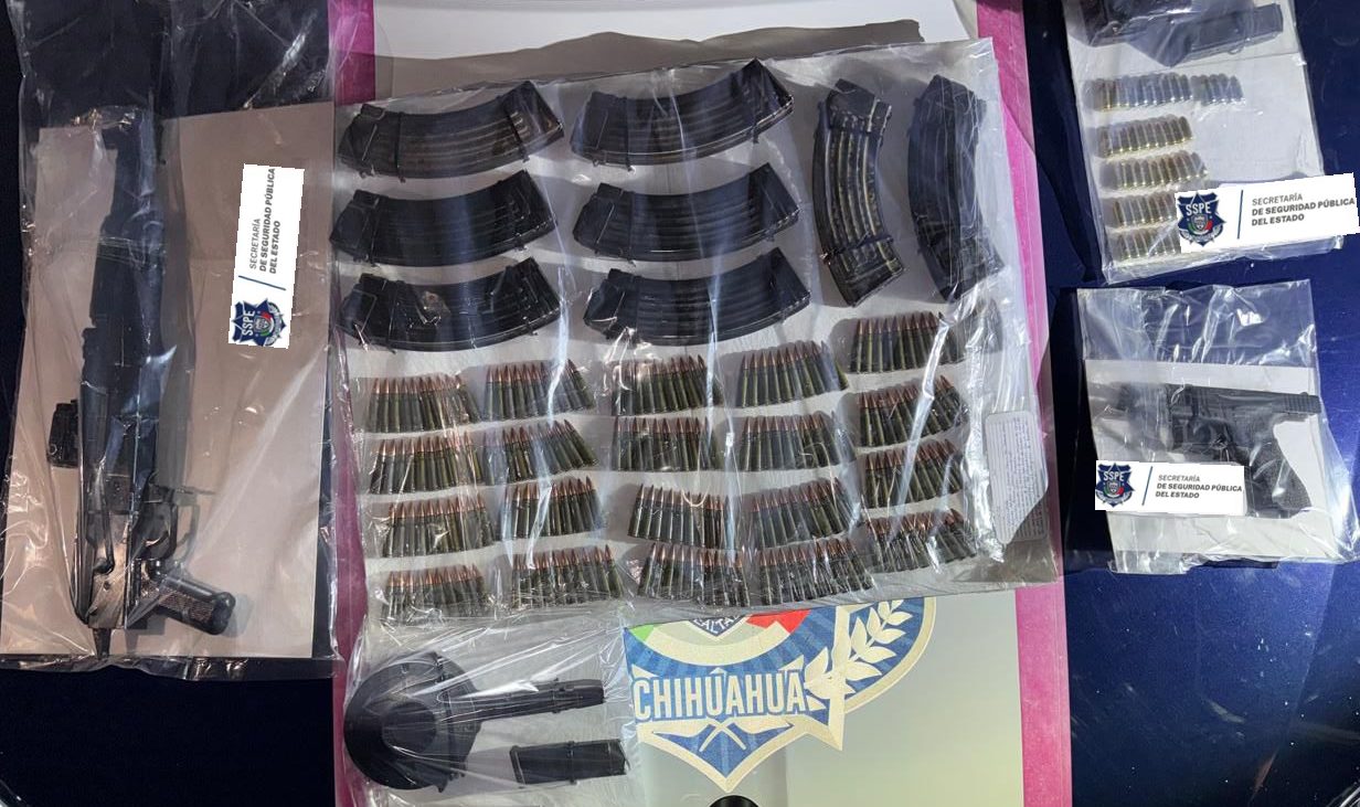 Al momento de su detención, el hombre portaba en la cintura dos cargadores, así como uno más en la bolsa del pantalón. Asimismo, al interior del vehículo se localizó un arma larga tipo fusil, además de diversos cargadores abastecidos, además de un cargador de tambor también abastecido.