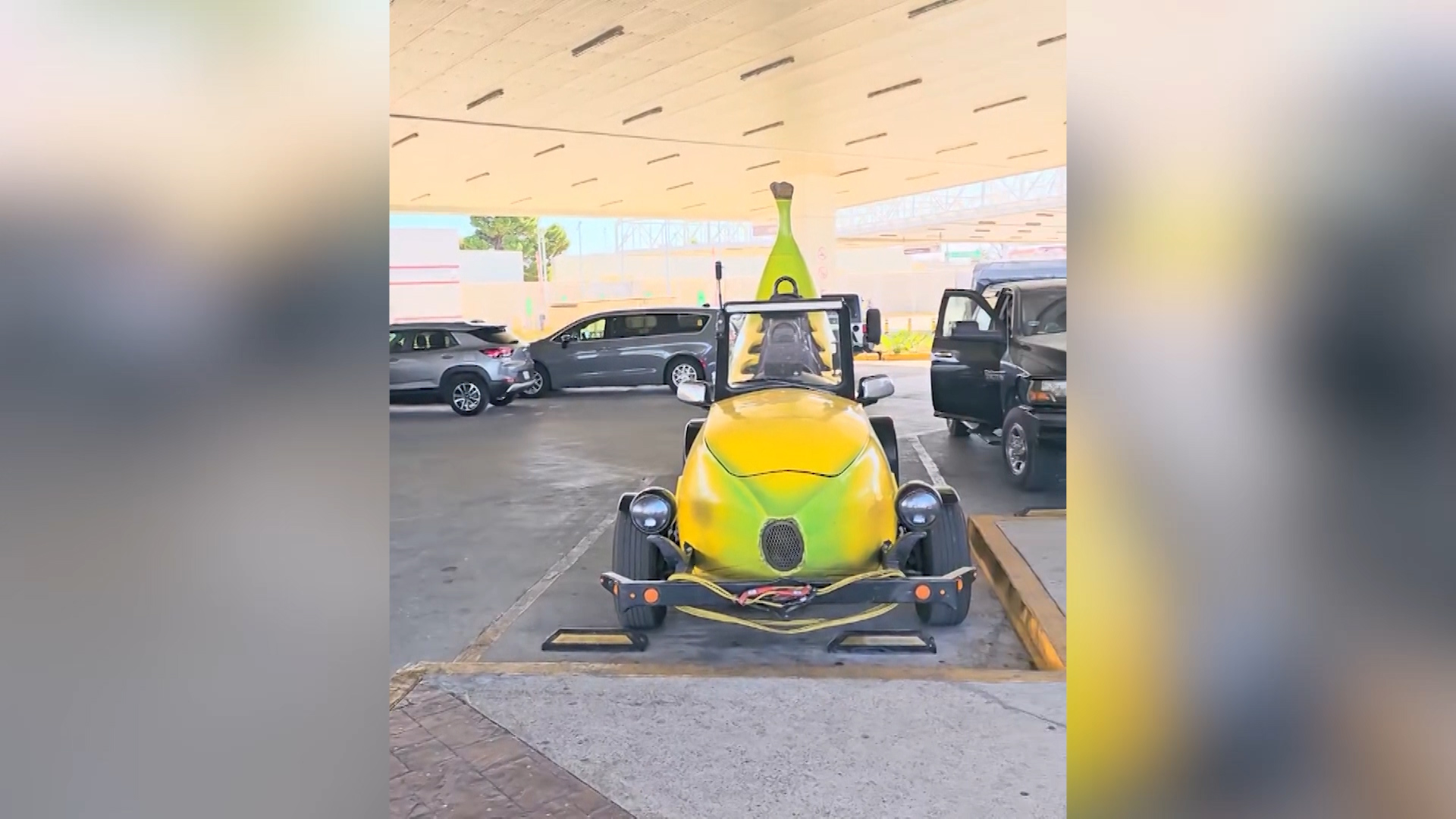 Chihuahua, Chih.- El Big Banana Car, que fue visto circulando por la avenida Tecnológico en la capital del estado, es un automóvil estadounidense diseñado en Michigan por su creador, Steve Braithwaite.