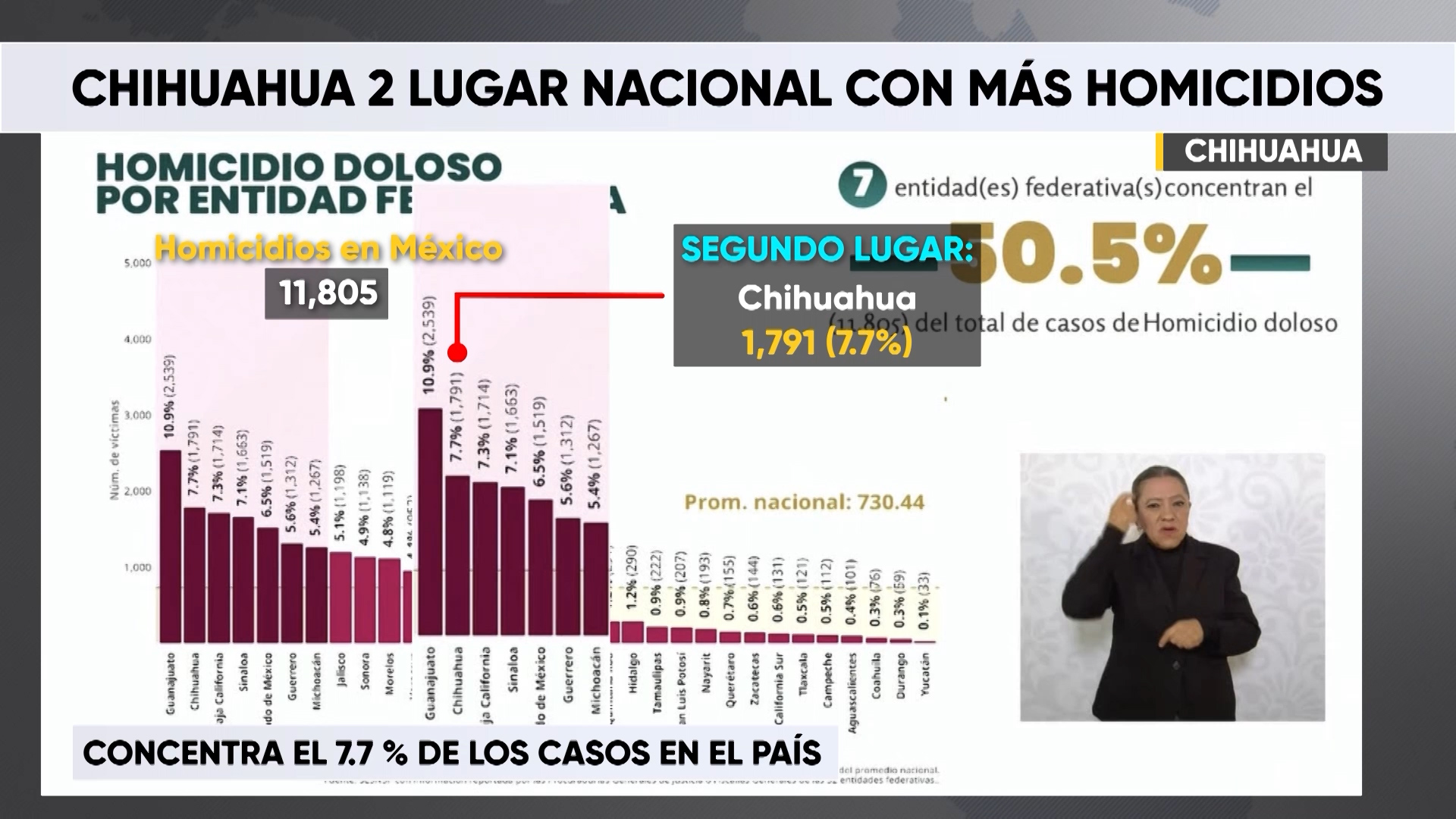 Cabe señalar que siete entidades federativas concentran el 50.5 % de los homicidios en México.