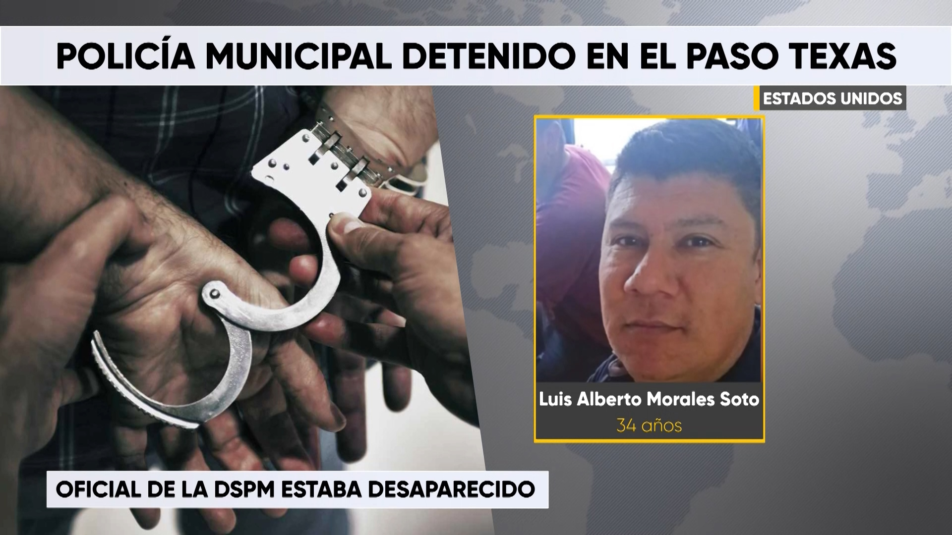 Chihuahua, Chih.- La Dirección de Seguridad Pública Municipal confirmó la detención en El Paso, Texas, del elemento Luis Alberto Morales Soto, de 34 años, quien estaba asignado al Grupo de Guardia y Custodia de Funcionarios Públicos en la capital.