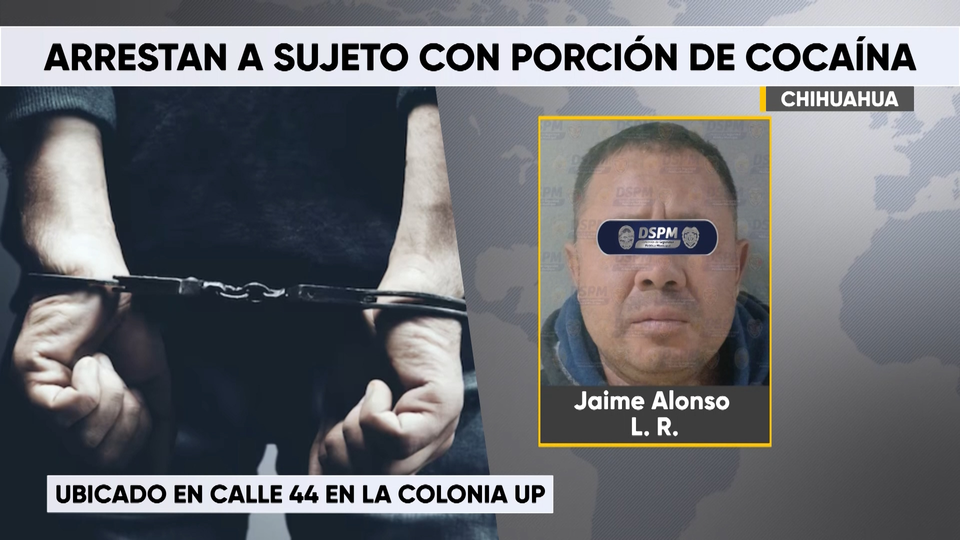 Chihuahua, Chih.- Un hombre fue detenido en calles de la colonia Unidad Proletaria tras localizarle cocaína entre sus pertenencias.