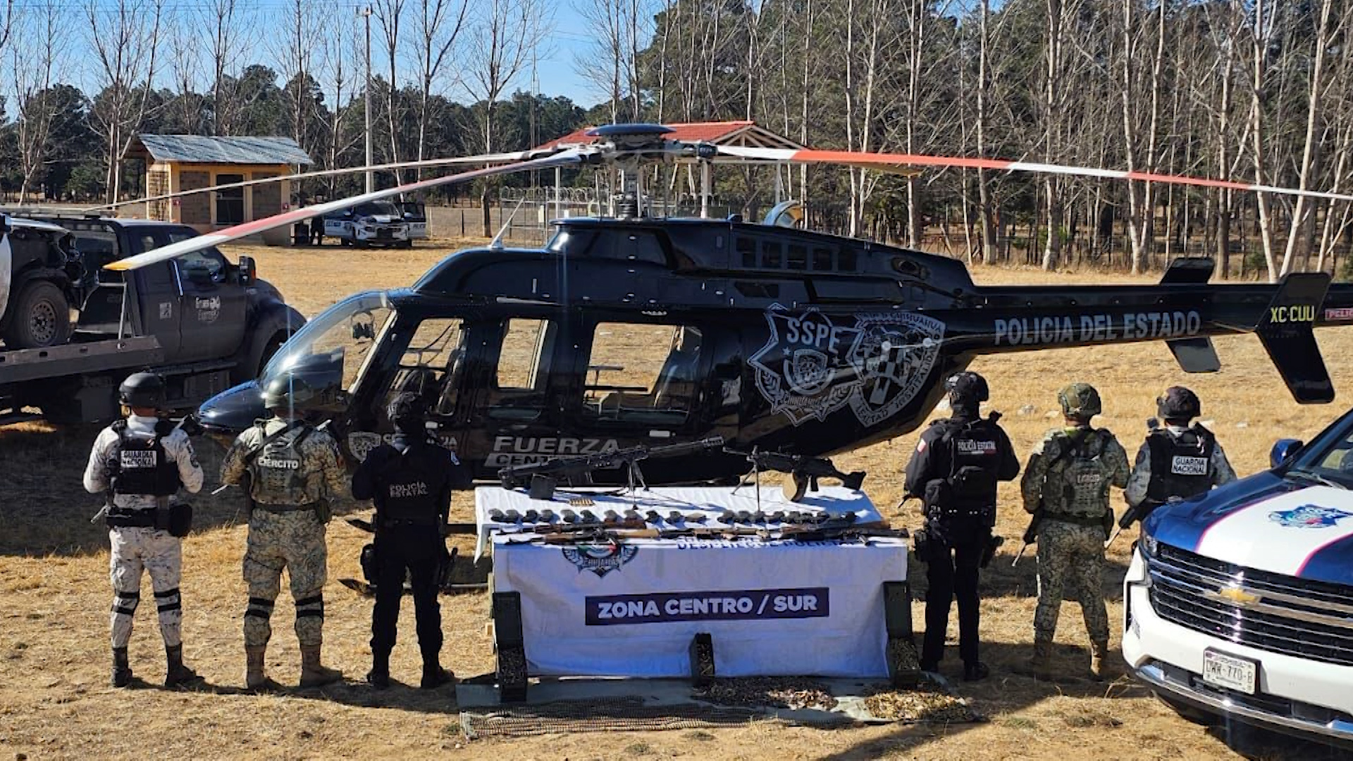Guachochi, Chih.- La Secretaría de Seguridad Pública, en coordinación con la Guardia Nacional y el Ejército Mexicano, aseguró un arsenal y dos vehículos presuntamente vinculados al crimen organizado tras un enfrentamiento armado registrado la tarde del sábado en el municipio de Guachochi.