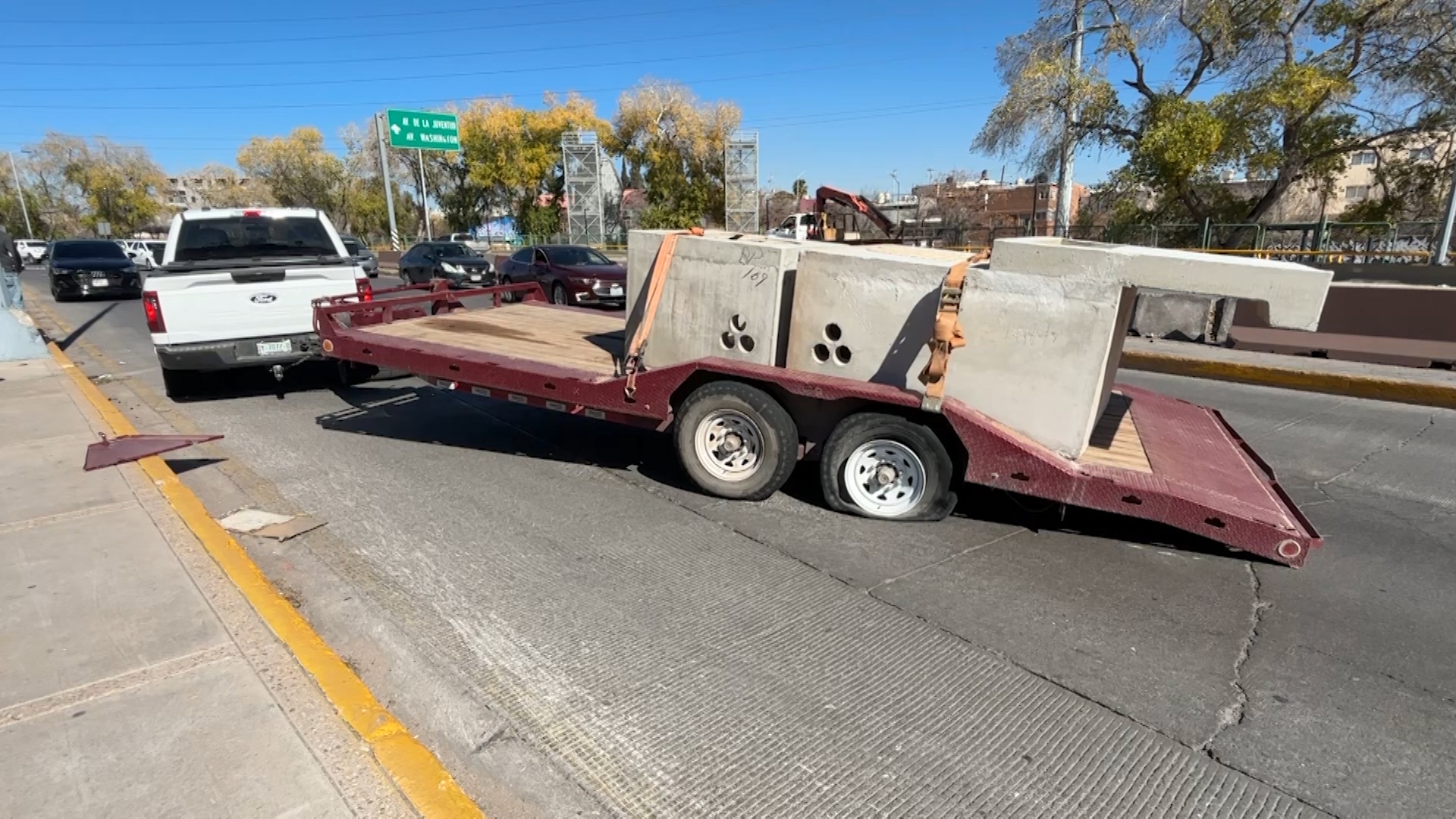 Chihuahua, Chih.- Una camioneta pick-up chocó contra el muro de contención de la Avenida de la Cantera, a la altura de la Río de Janeiro, después de que el peso excesivo del vehículo ocasionara que se desprendiera una llanta de la unidad. El vehículo se encontraba acoplado a un remolque (traila) que cargaba bloques destinados a obras de alcantarillado.