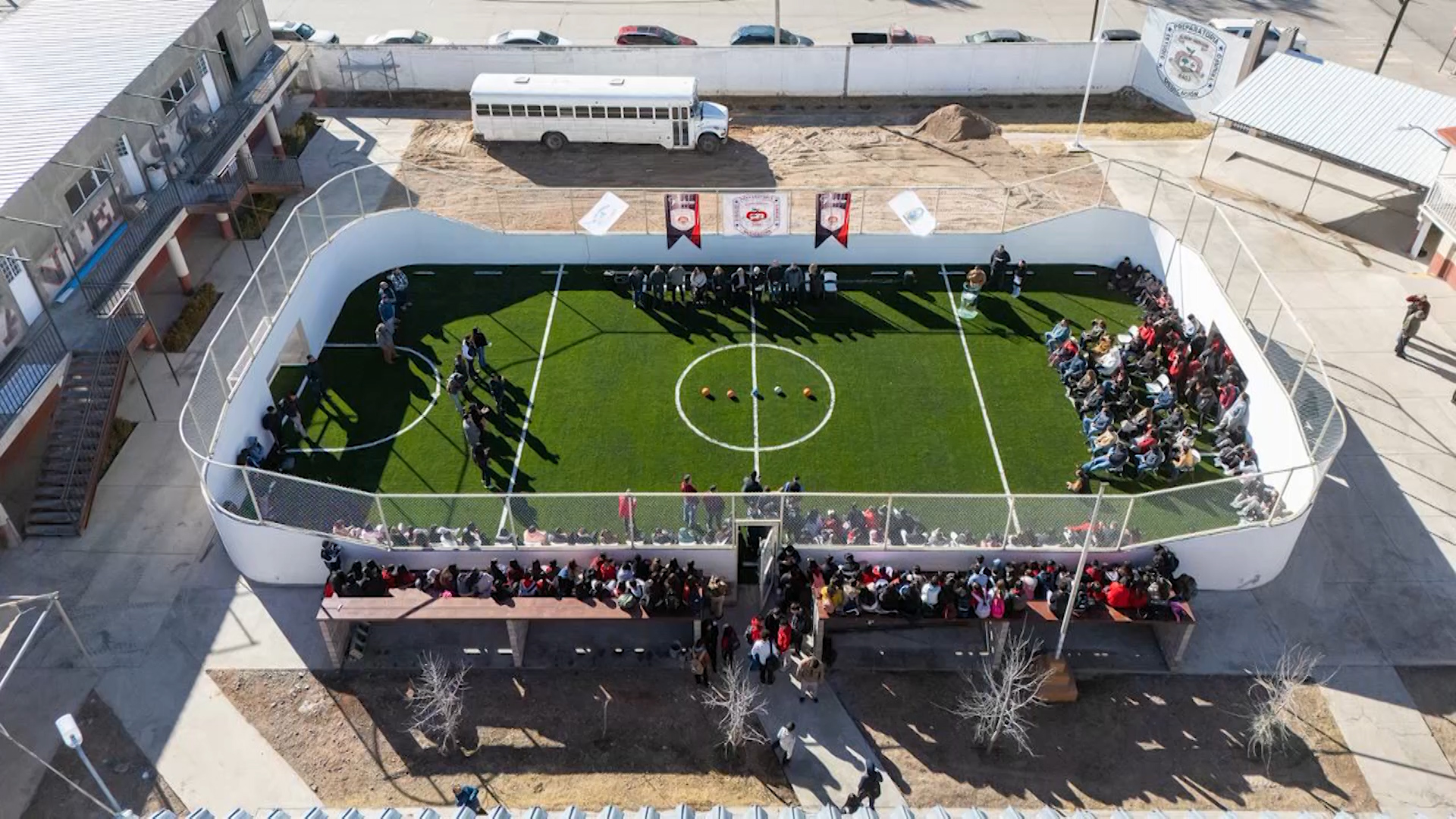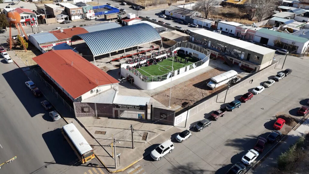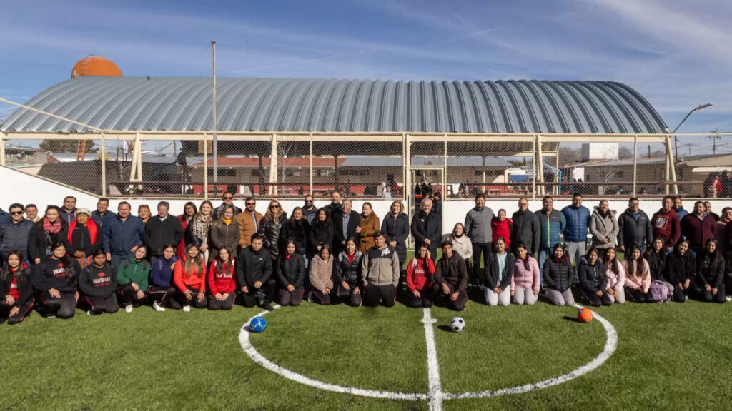 Entregan cancha de pasto sintético en la Preparatoria 8403 en Cuauhtémoc