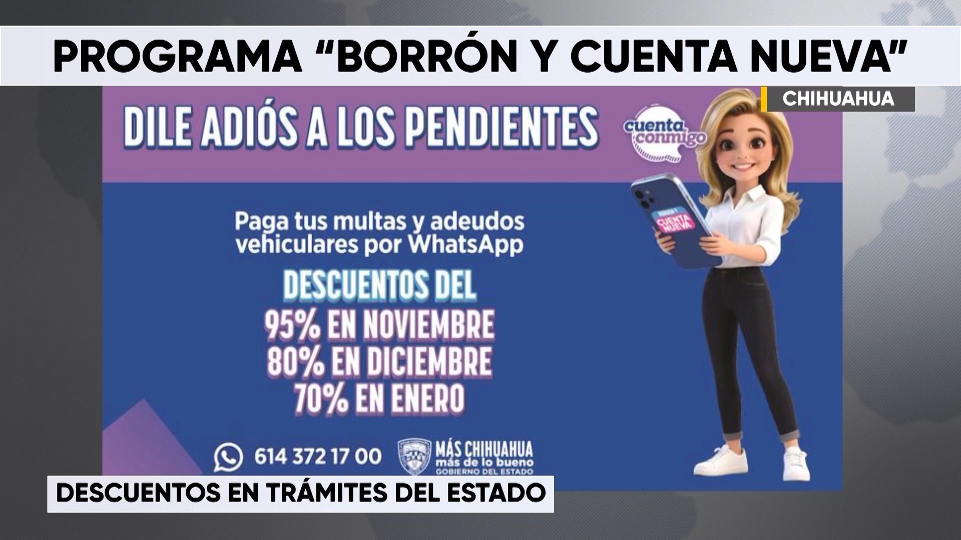 Chihuahua, Chih.- En lo que va de la presente edición del programa “Borrón y cuenta nueva”, la Secretaría de Hacienda estatal ha realizado un total de 660 mil 58 trámites, que incluyen adeudos vehiculares, pagos en recargos de impuestos estatales, trámites para licencia de conducir, entre otros.