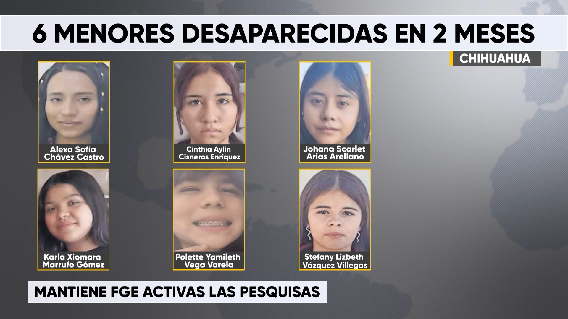Chihuahua.- Al menos seis adolescentes han desaparecido durante los últimos dos meses en la entidad, de acuerdo con el reporte emitido por la Fiscalía General del Estado (FGE), instancia que mantiene activas las pesquisas para dar con su paradero.