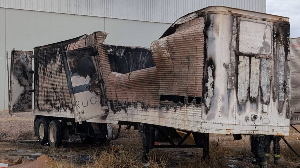 Chihuahua, Chih.- Sujetos provocaron el incendio de la caja de un tráiler al interior de un complejo industrial ubicado en la vialidad Sacramento, a la altura de la calle Roble.