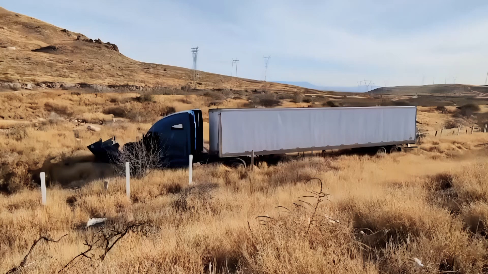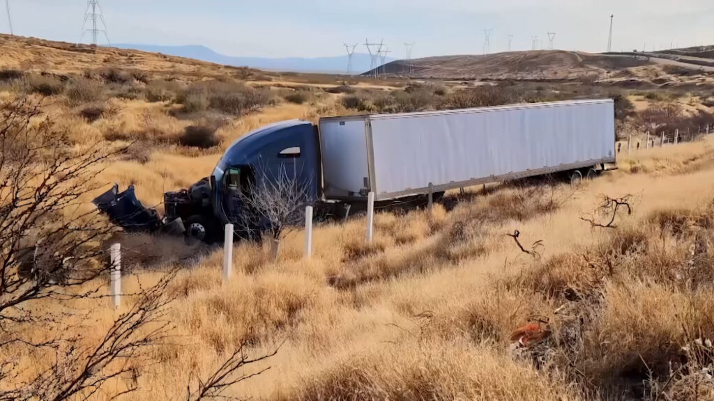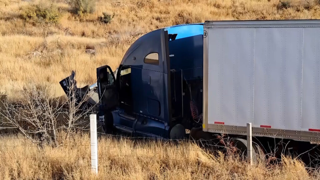 Chihuahua.- Después de que su conductor se quedara dormido, un tráiler en circulación cayó en un desnivel tras salir del camino en una curva ubicada en el kilómetro 183 de la carretera Delicias-Chihuahua.