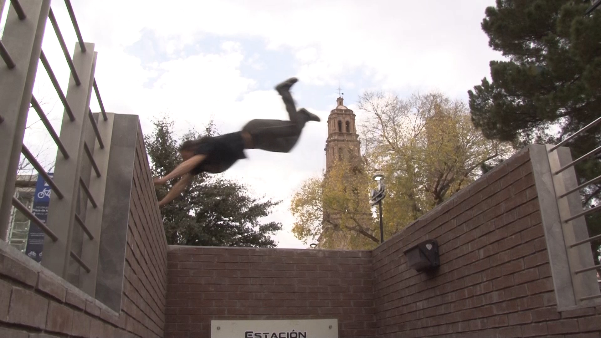 Chihuahua, Chih.- Jóvenes de la comunidad Parkour Chihuahua salieron a practicar acrobacias en las escaleras rumbo a la estación subterránea del Bowí, en el centro de la ciudad, lo que atrajo la atención de decenas de capitalinos.