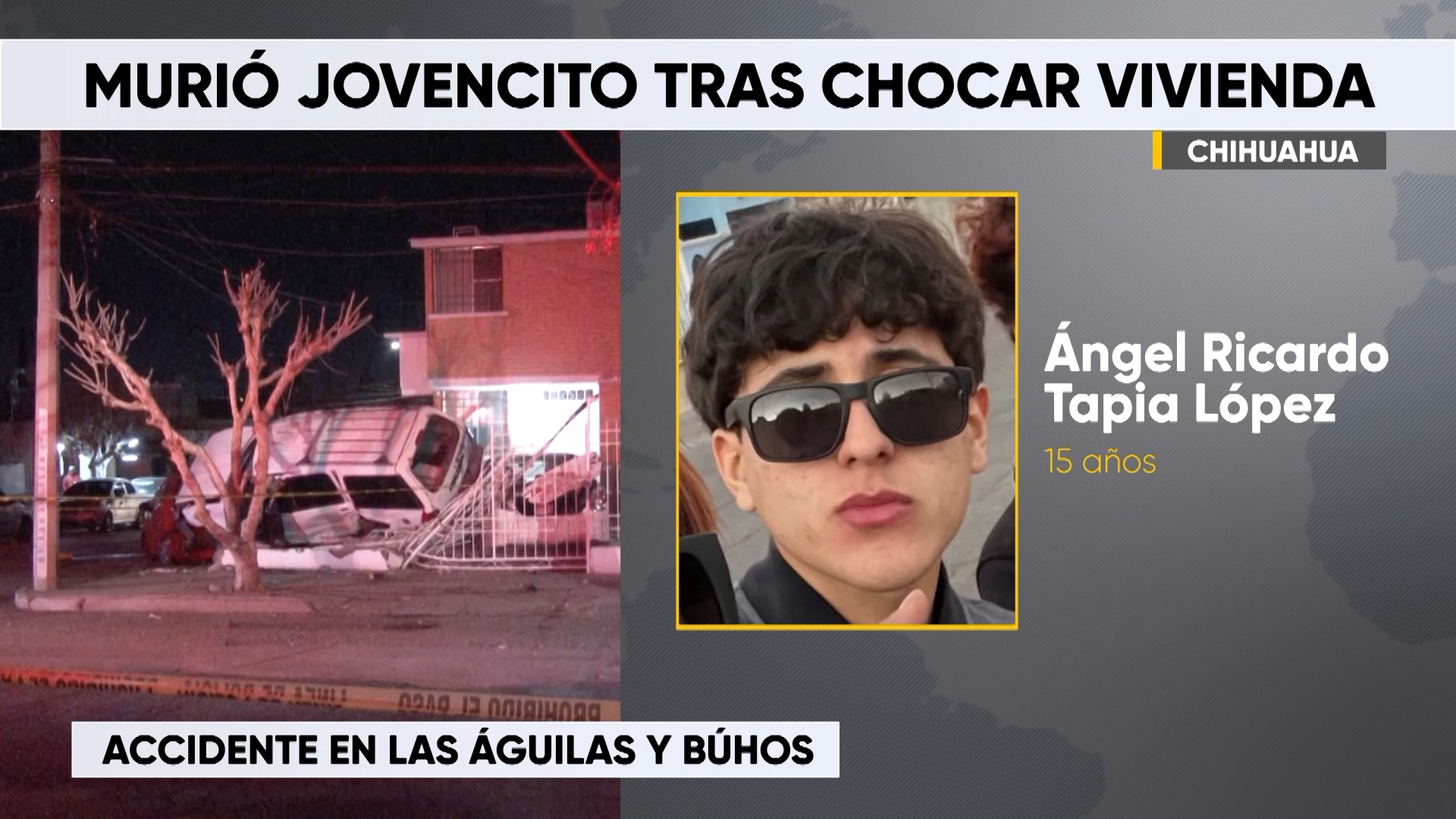 Chihuahua, Chih.- Un adolescente de 15 años, identificado como Ángel Ricardo Tapia López, falleció tras chocar contra un domicilio y cuatro vehículos mientras conducía a exceso de velocidad en el cruce de la avenida Las Águilas y la calle Búho, en la colonia Colinas del Sol.