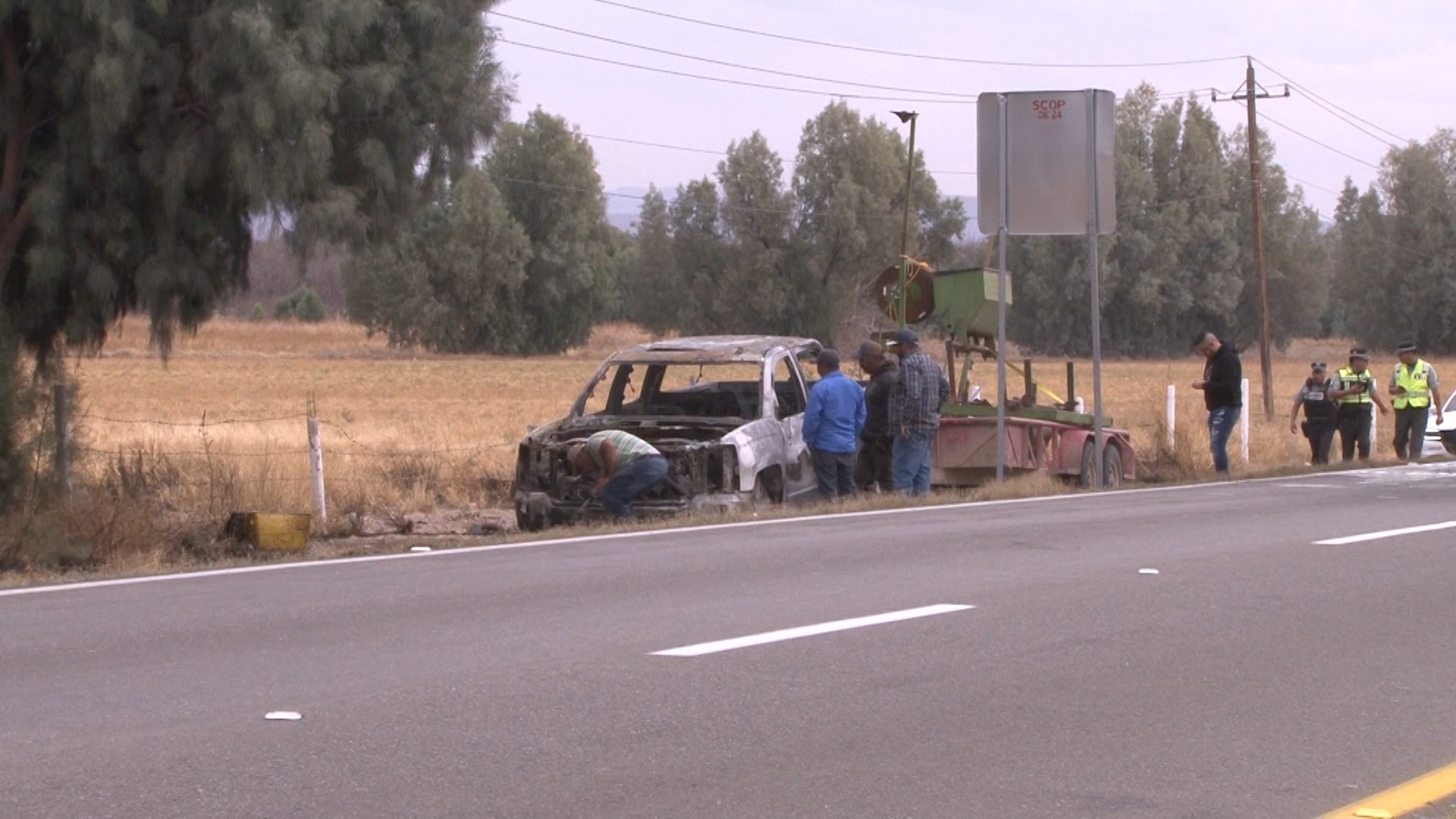 Debido a la inercia del vehículo, la unidad terminó impactando y derribando un poste de telefonía. La fuerza del choque fue tal que la estructura de madera fue arrancada completamente de su base, generando daños materiales de consideración tanto en el mobiliario urbano como en la parte frontal de la camioneta.