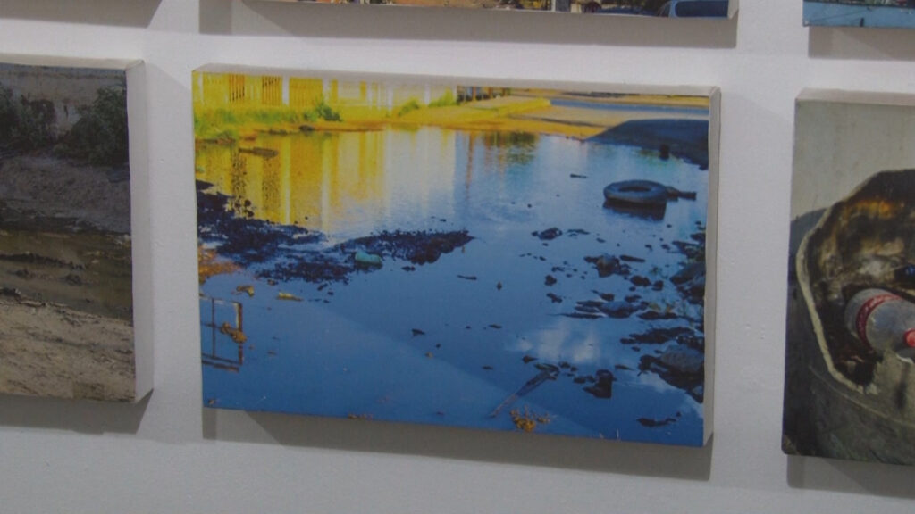 Chihuahua, Chih.- Niños de la colonia Mármol II realizaron un mural fotográfico para exponer las problemáticas del lugar, entre ellas la famosa fuga de agua conocida por los vecinos como “El lago de los cisnes”.
