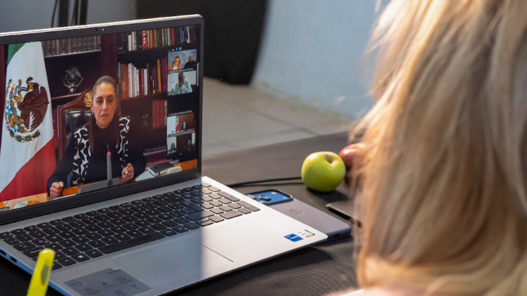 Estado.- La gobernadora del estado, María Eugenia Campos Galván, participó en una reunión virtual encabezada por la presidenta de México, Claudia Sheinbaum, en la que se abordó la estrategia nacional de vacunación contra el sarampión, y allí expuso el caso de éxito de Chihuahua.