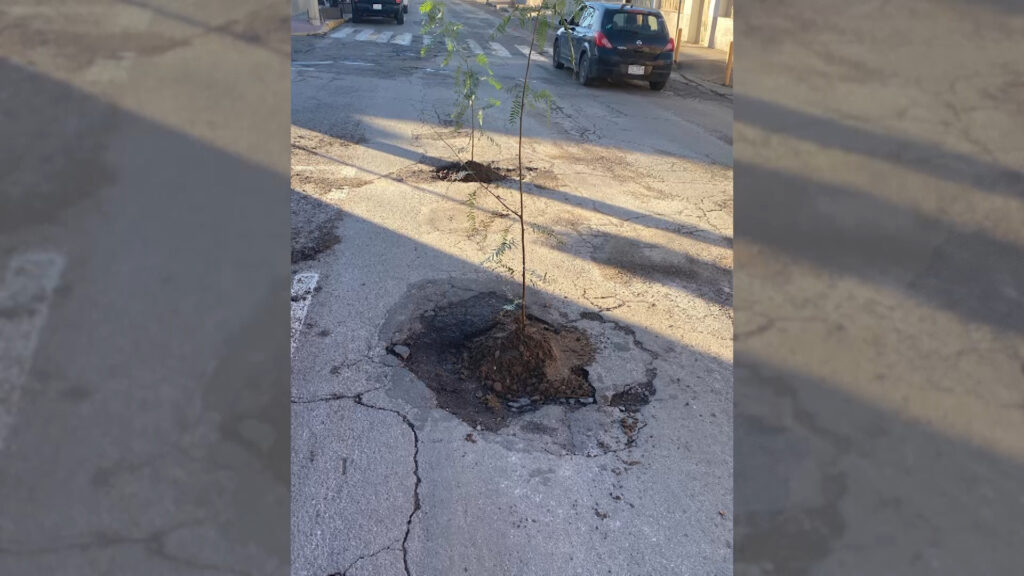 Parral, Chih.- Debido a la abundancia de baches peligrosos en Parral, el regidor del PRI, Vicencio Chávez, plantó árboles dentro de estos como una forma de protesta pacífica y simbólica.