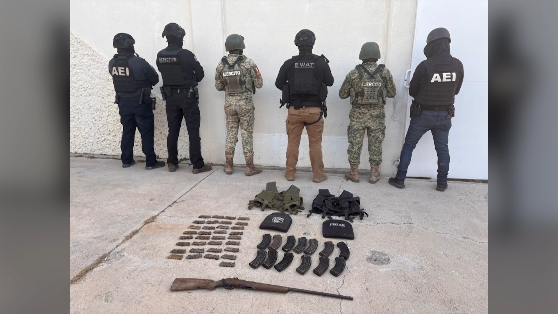 Chihuahua.- En un operativo conjunto entre elementos de la Secretaría de Seguridad Pública del Estado (SSPE), la Fiscalía General del Estado (FGE) y la SEDENA, se logró el aseguramiento de armamento, municiones y equipo táctico en el municipio de Guachochi.