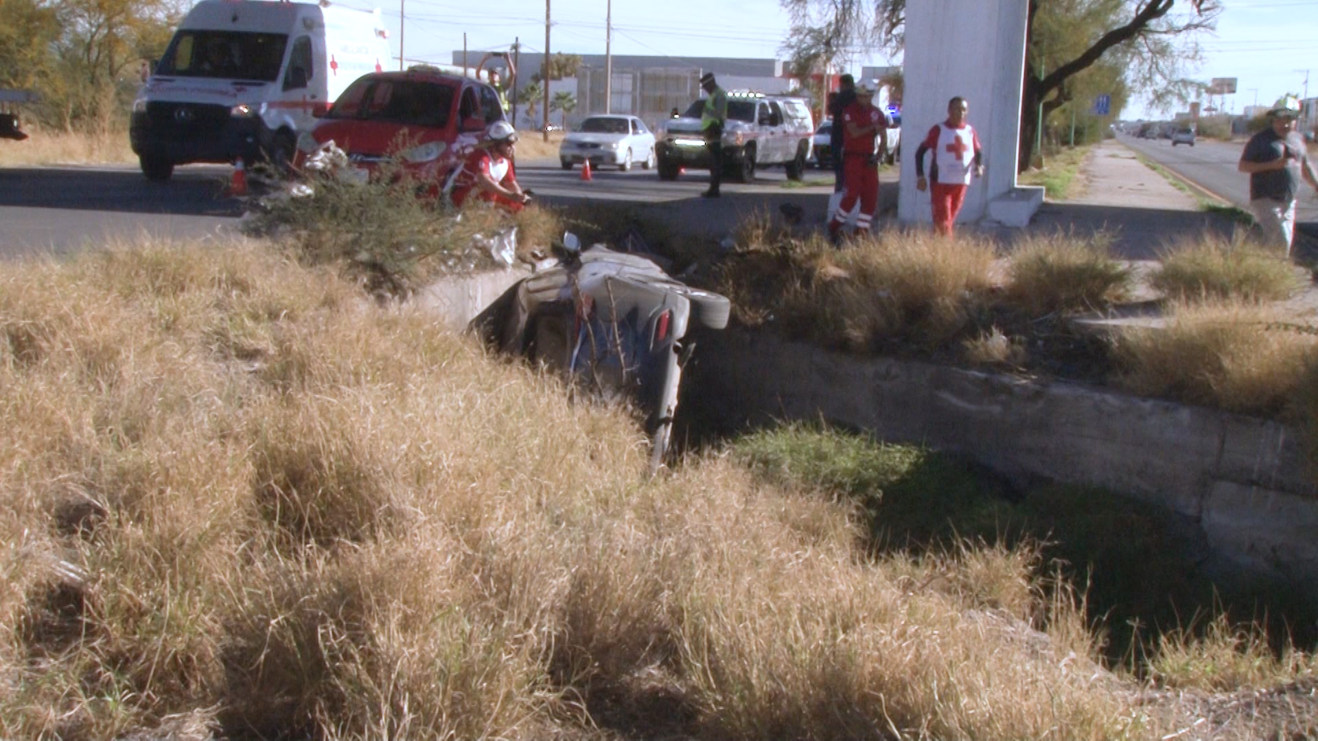 Delicias, Chih.- Un conductor, presuntamente de origen chino, perdió el control de su vehículo y cayó a un canal ubicado a un costado del puente de Lotes Urbanos, en el kilómetro 139 de la carretera 45, sentido norte-sur. El incidente ocurrió la tarde del lunes.