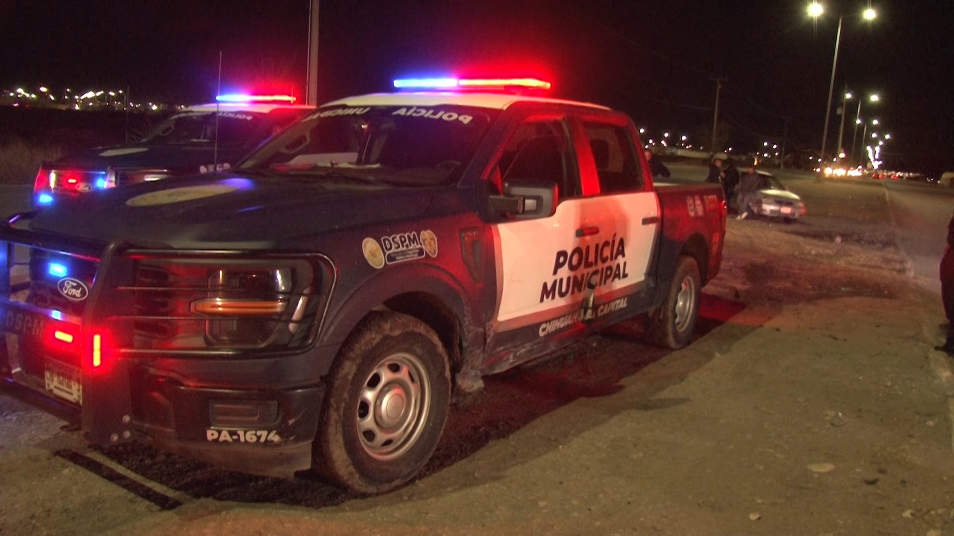 Ambos vehículos, incluida la unidad oficial con número económico PA1674, circulaban de oeste a este sobre la avenida Equus cuando se produjo el impacto.