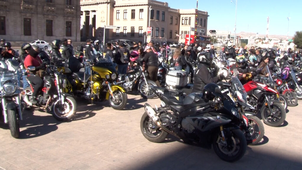 Chihuahua, Chih.- En el marco de las celebraciones por el Mes del Ejército Mexicano y la Fuerza Aérea, decenas de motociclistas se reunieron en la Plaza del Ángel para participar en una rodada familiar, atendiendo a una invitación especial por parte de las Fuerzas Armadas.