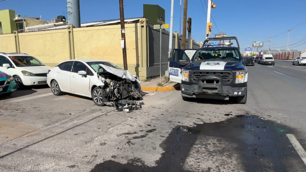 Chihuahua, Chih.- Dos personas resultaron lesionadas después de que una conductora chocara su camioneta Nissan X-Trail contra un automóvil al omitir la luz roja del semáforo frente al Centro de Convenciones, en el cruce de las calles Corregidora y Avenida Tecnológico, en la colonia Santo Niño.