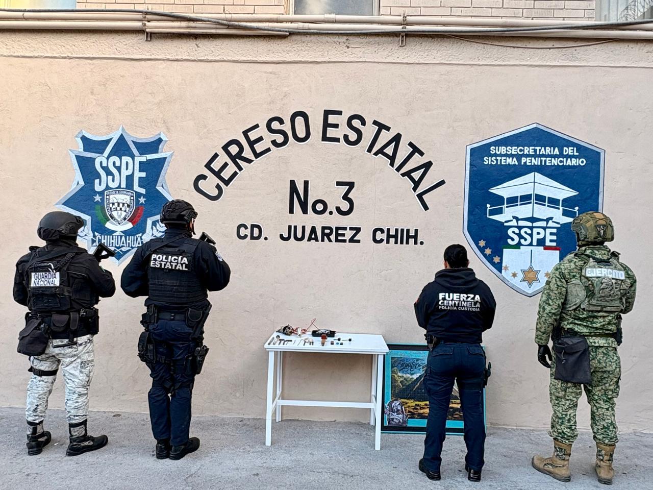 Ciudad Juárez, Chih.- La Secretaría de Seguridad Pública del Estado (SSPE), en coordinación con personal del Ejército Mexicano y la Guardia Nacional, desplegó la mañana del 24 de febrero un operativo extraordinario de revisión al interior del Centro de Reinserción Social número 3 en Ciudad Juárez.
