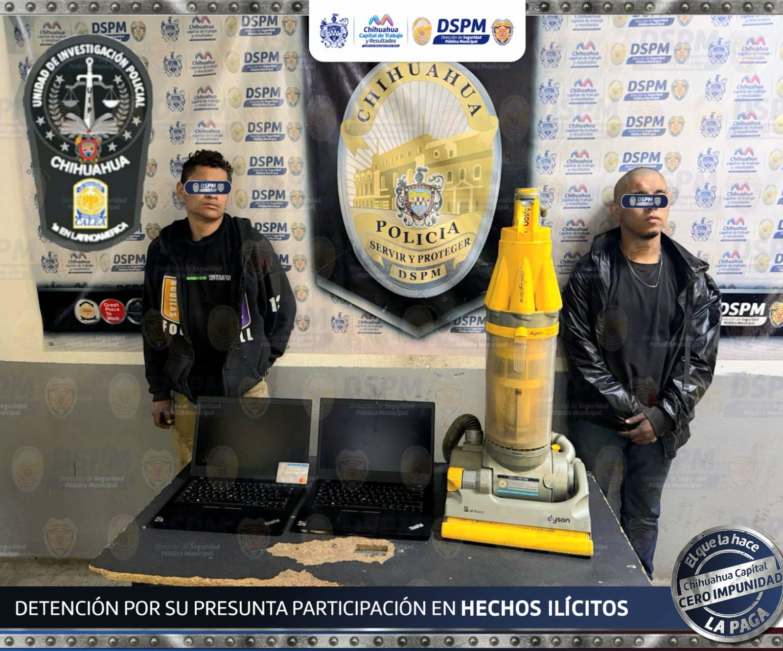 La detención de José Adán M. T. y Juan Carlos M. V., de 32 y 26 años de edad respectivamente, se dio el mismo día del robo en las calles Teófilo Borunda y Ernesto Talavera luego de una rápida investigación con cámaras particulares y de la Plataforma Escudo Chihuahua, PECUU.