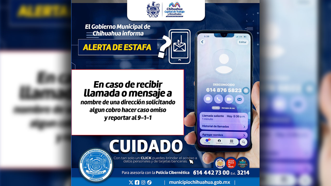 Chihuahua, Chih.– El Gobierno Municipal de Chihuahua informa a la ciudadanía que se han detectado llamadas telefónicas fraudulentas en las que se solicita el pago por concepto de uso de suelo.