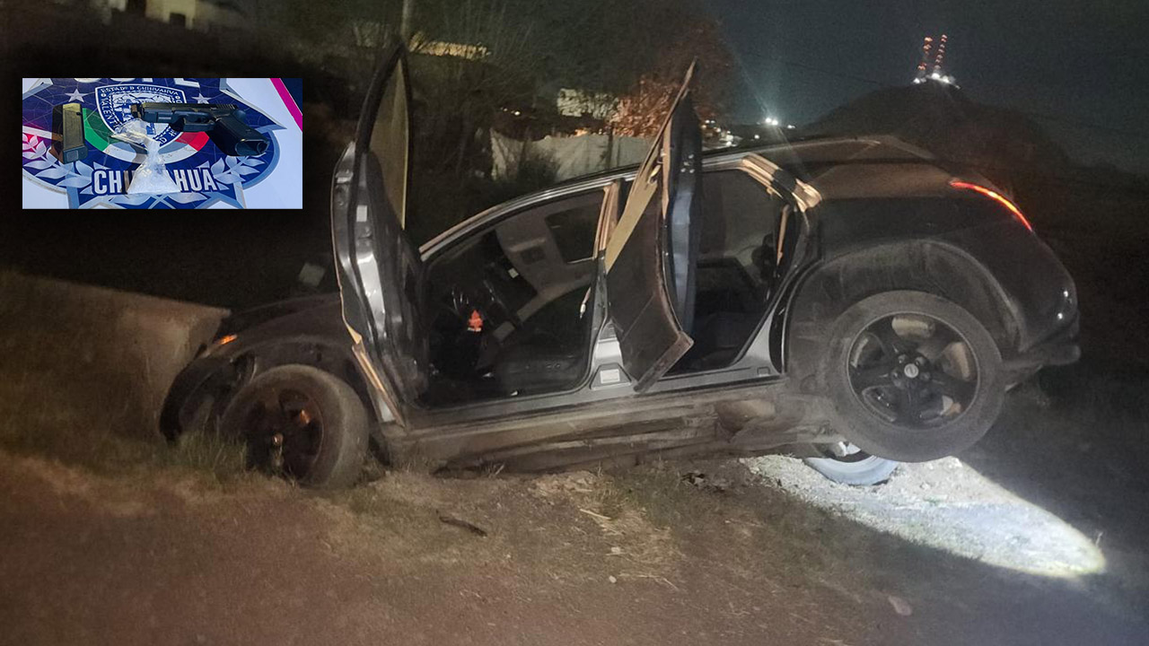Chihuahua, Chih.- Elementos de la Secretaría de Seguridad Pública del Estado (SSPE), a través de la Subsecretaría de Despliegue Policial, aseguraron un vehículo que contenía metanfetamina y un arma de fuego durante recorridos de prevención y disuasión del delito en Chihuahua.