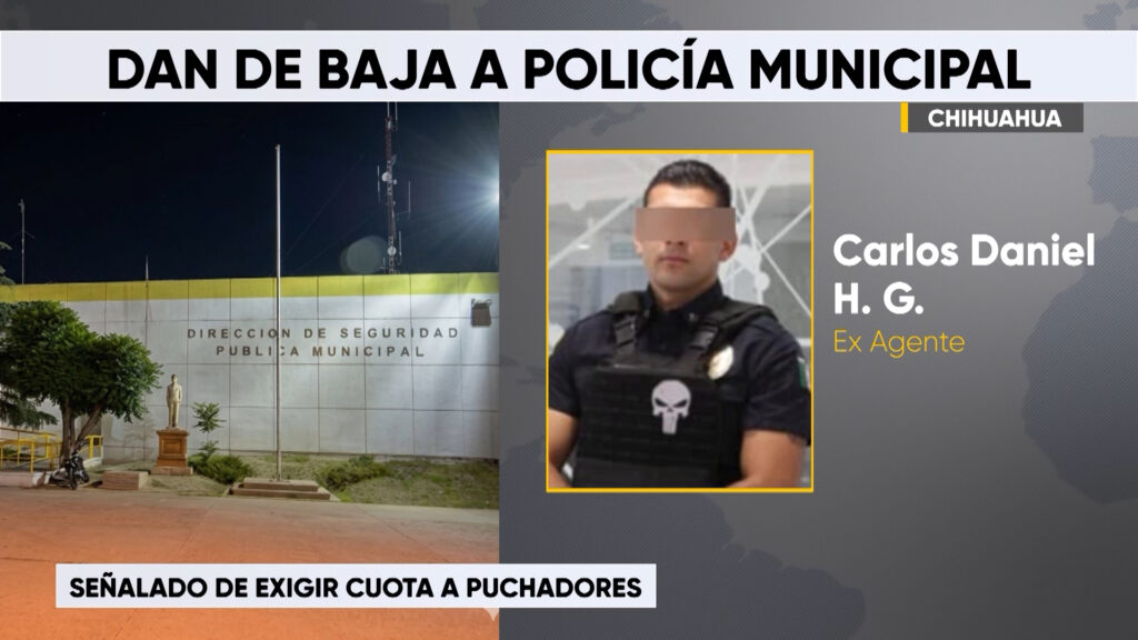Chihuahua, Chih.- El policía tercero Carlos Daniel H.G., perteneciente a la Policía Municipal, fue retirado de la corporación y sometido a investigación tras presuntamente cobrar cuotas de piso a vendedores de droga cerca de la Central de Abastos.