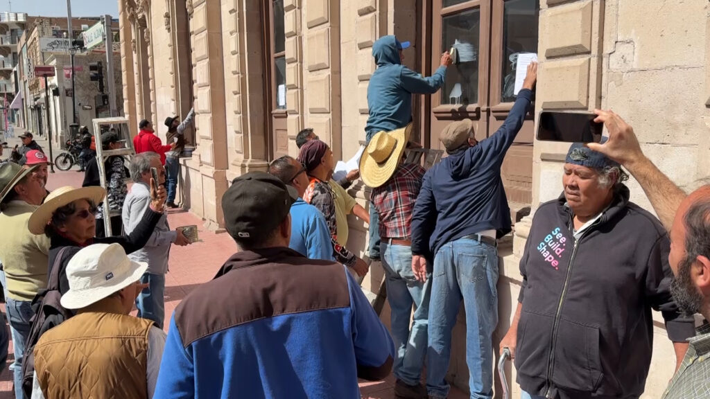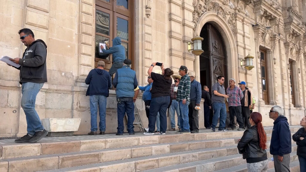 Chihuahua, Chih.- Integrantes del colectivo Retén Ciudadano colocaron copias de un documento sellado en las ventanas del Palacio de Gobierno de Chihuahua, con el objetivo de exigir una reunión con autoridades estatales, tras denunciar falta de respuesta a una petición relacionada con el sistema de transporte público.