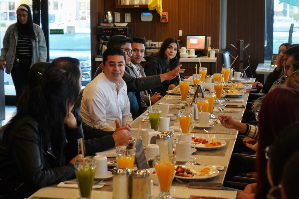 Durante el diálogo, el funcionario estatal habló sobre su trayectoria, desde su etapa como estudiante hasta su incursión en la vida pública, así como el trabajo que actualmente realiza al frente de la Secretaría de Desarrollo Humano y Bien Común.