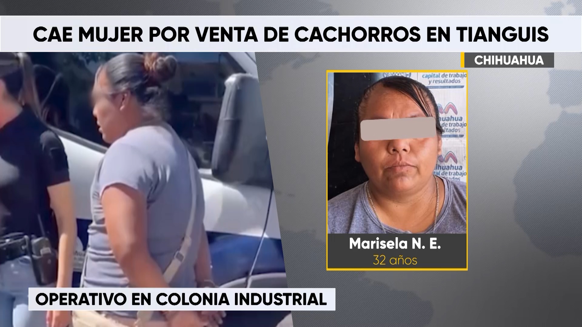 Chihuahua, Chih. — Marisela N. E., de 32 años, fue detenida por la Policía Municipal tras ser denunciada en redes sociales por vender cachorros de la raza “Pug” en el tianguis de la colonia Industrial.