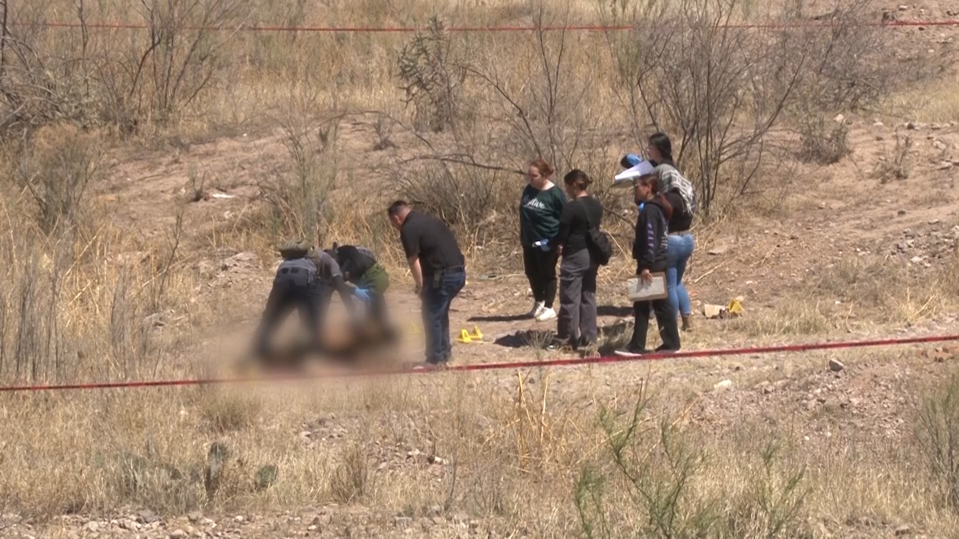 La víctima vestía pantalón caqui y ropa interior color rojo, y presentaba impactos de bala. Elementos de la Fiscalía acudieron al lugar para levantar el reporte correspondiente, mientras que personal de SEMEFO se encargó del levantamiento y traslado del cuerpo.