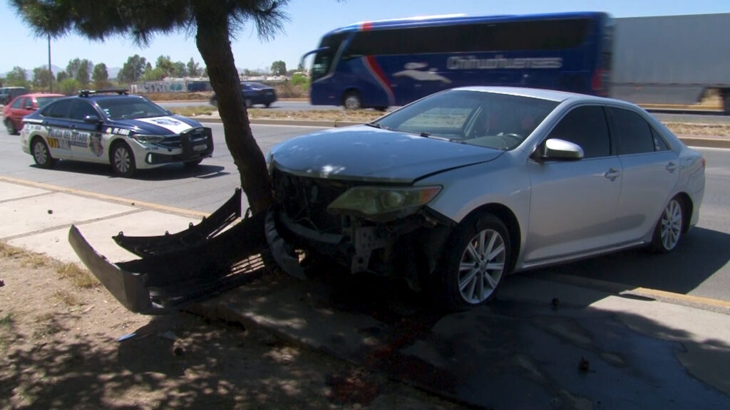 Chihuahua, Chih.- Tras escaparse de clases junto con su grupo de amigos, un joven conductor chocó su Toyota Camry contra un árbol en el sentido contrario al que circulaba, sobre la vialidad Sacramento, a la altura de la calle Juan Escutia.