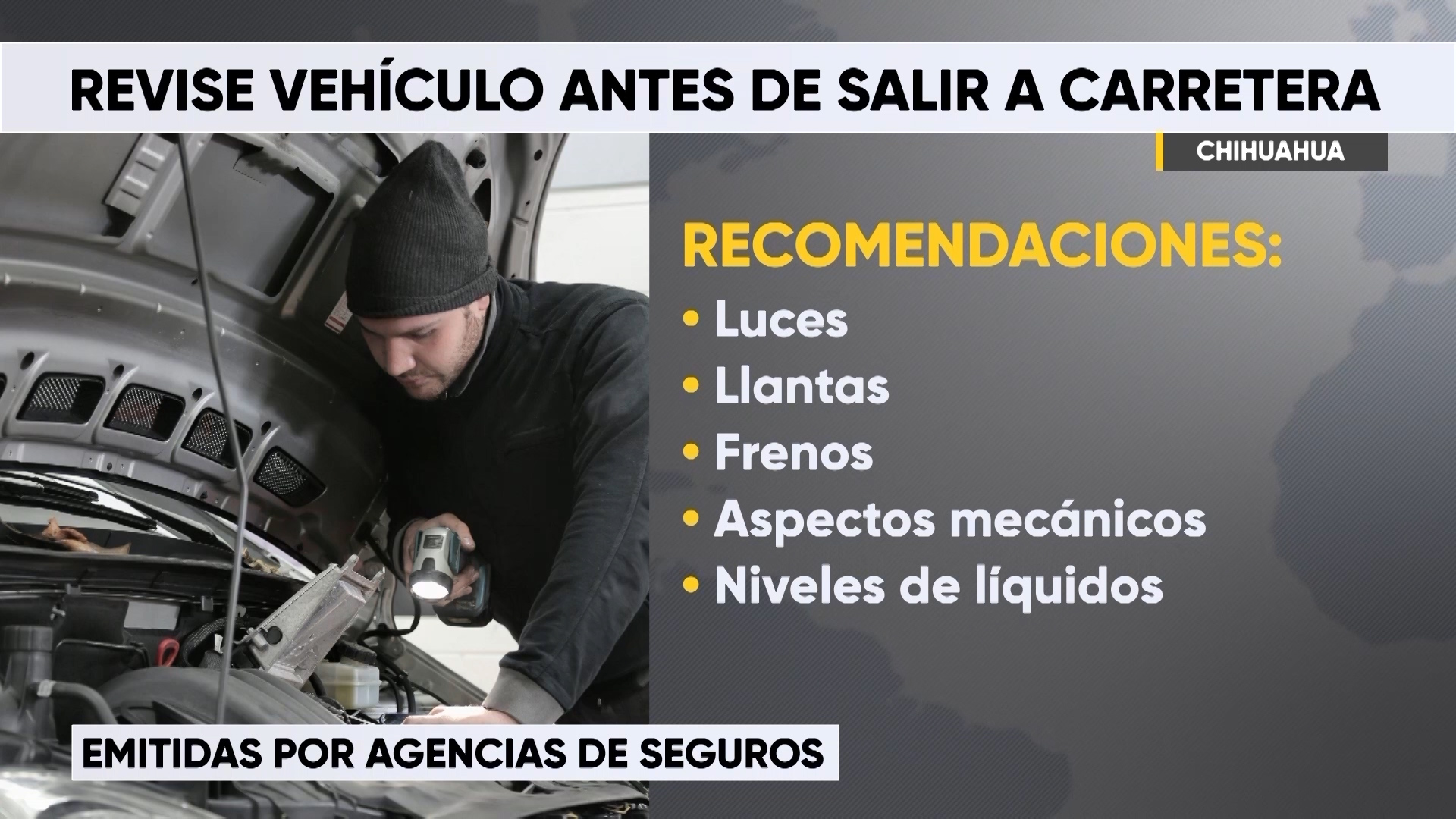 Chihuahua.- Antes del periodo vacacional, mecánicos y agencias automotrices recomendaron a la ciudadanía realizar una revisión integral de sus vehículos antes de iniciar cualquier trayecto en carretera.