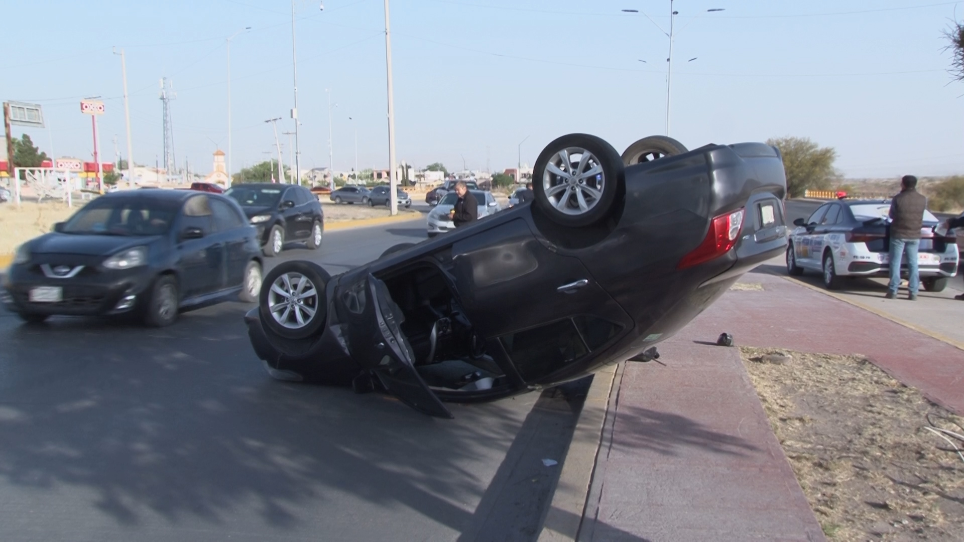 Chihuahua, Chih.- Una volcadura se registró durante las primeras horas de este sábado en el cruce de Vialidad Sacramento y Vialidad Los Nogales, donde un joven originario de Durango resultó lesionado.