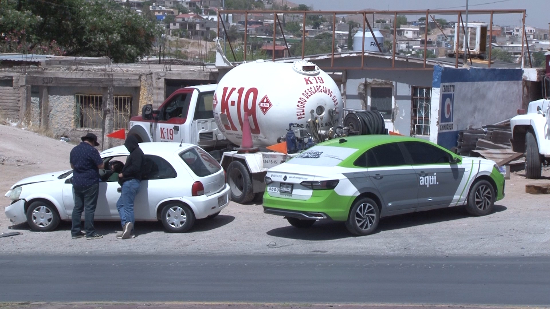 En el percance participaron una pipa de gas que transportaba el 50 por ciento de su carga, así como un Nissan Versa color gris, un Chevrolet color blanco y una camioneta Dodge Dakota.