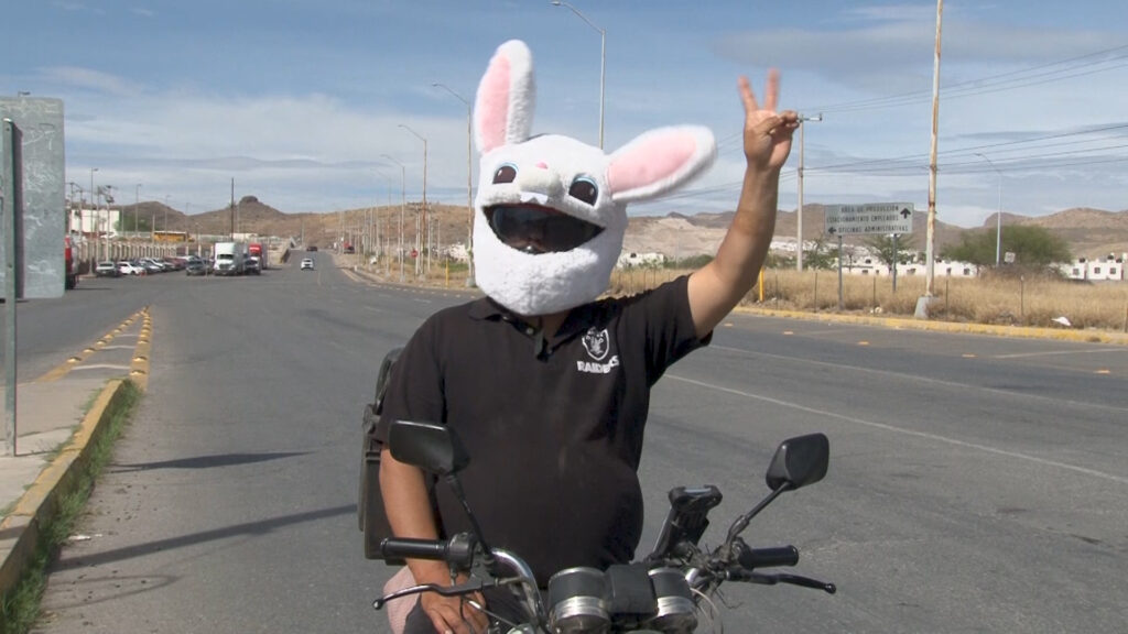 Decidió portar un casco de conejo y bailar con entusiasmo a bordo de su motocicleta mientras realiza su trabajo, con el objetivo de alegrar el día de los chihuahuenses.