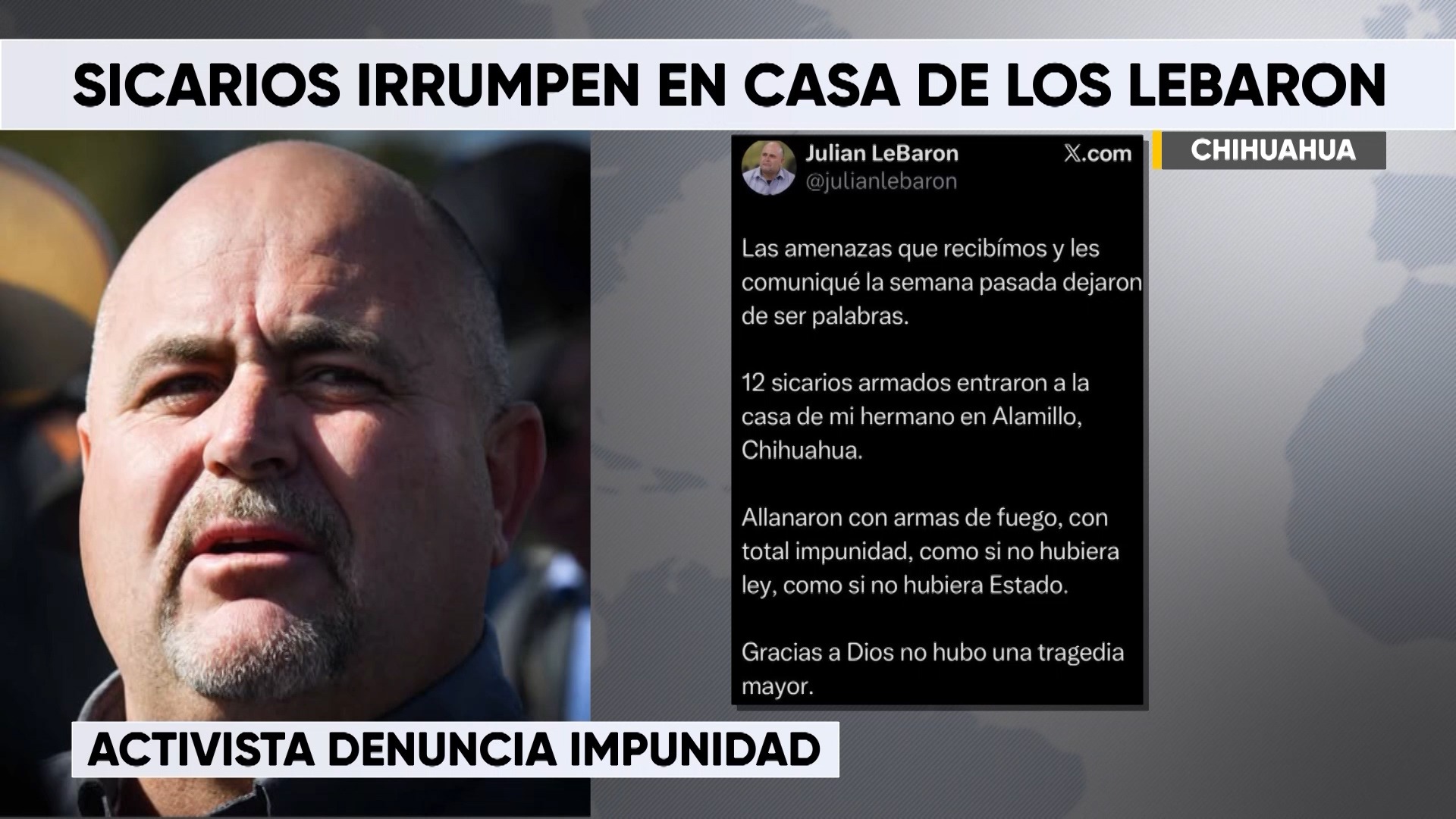 Lebarón acusó la falta de autoridad y la impunidad con la que operan estos grupos criminales, señalando la incapacidad del Estado para garantizar la seguridad de la población en la región.