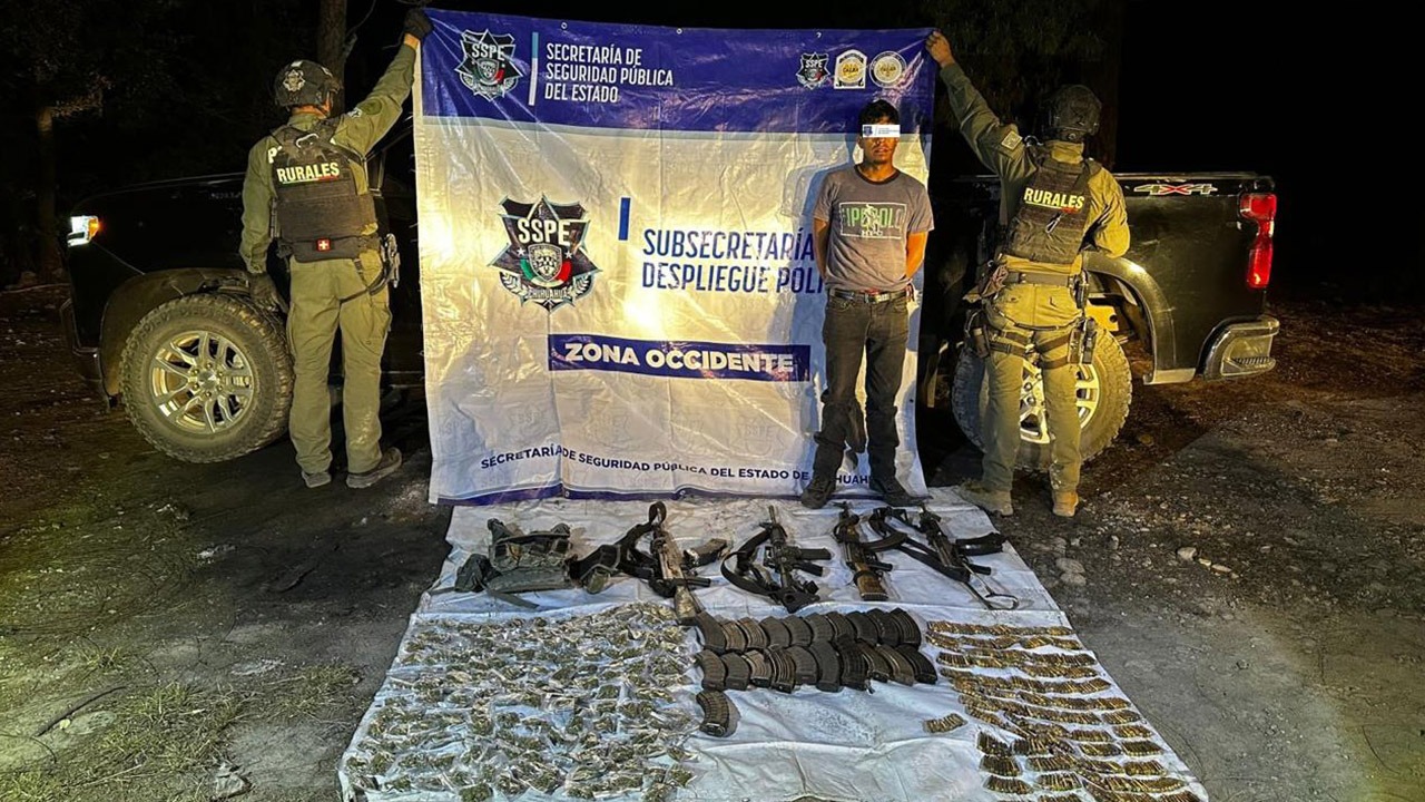 Chihuahua.- Elementos de la Policía de Despliegue de la Secretaría de Seguridad Pública del Estado (SSPE) llevaron a cabo el arresto de 3 agresores en el municipio de Moris luego de que abrieran fuego en contra de los agentes, en un hecho que derivó en el aseguramiento de armamento, explosivos y droga.