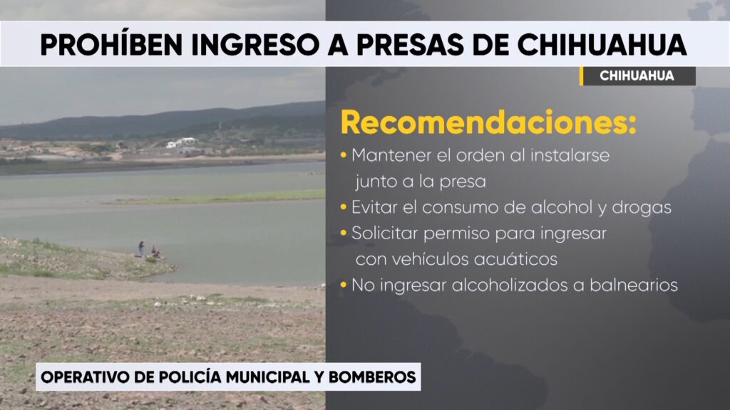 Chihuahua, Chih.- Además del operativo de vigilancia de bomberos y policías en las presas, las autoridades emitieron recomendaciones a los visitantes para evitar incidentes.