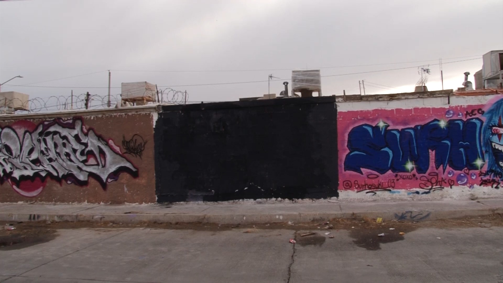 Ciudad Juárez, Chih.- El mural con imagen crítica del alcalde Cruz Pérez Cuéllar fue borrado en el cruce de Torres de San Luis y De las Torres, en la colonia Juárez Nuevo.